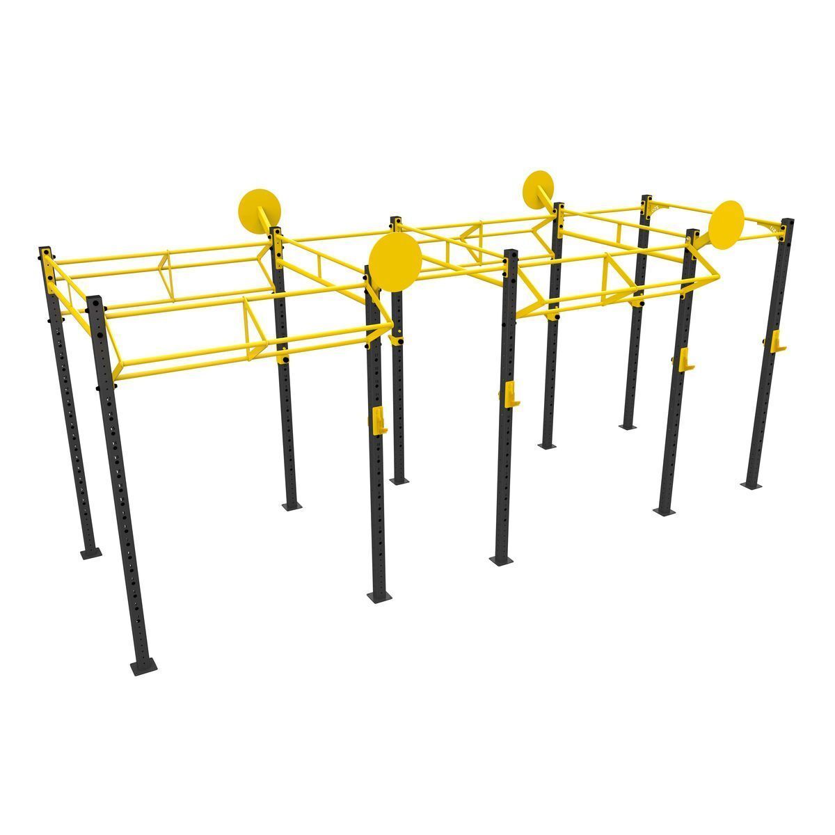 А0335 Функциональная рама 5800-1800.Функциональная рама для кроссфита – неотъемлемый атрибут любого crossfit-зала, универсальное решение необходимое для проведения комплексных тренировок и выполнения силовых упражнений.Основные элементы рамы выполнены из профильной трубы 80*80*3 мм,трубы d32 мм и листов металла 8 и 10 мм. Состав:Стойка перфорированная 80х80, ZSO-2680 -10 шт Перекладина одинарная d32, ZSO-1100 - 4 шт Перекладина треугольная d32/32/32, ZSO-1800- 4 шт Перекладина двойная d32, ZSO-1800- 4 шт Перекладина одинарная УСИЛЕННАЯ d32, ZSO-1800 -1 шт Мишень для медбола, ZSO - 4 шт Крюки для штанги, ZSO, (пара)-4 шт