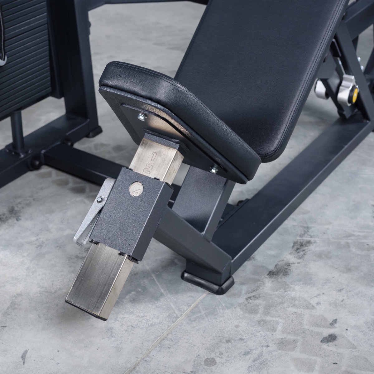 Система нагрузки – тросовая, с весовым стеком 100 кг. Весовой стек выполнен из стальных плит с порошковым покрытием.