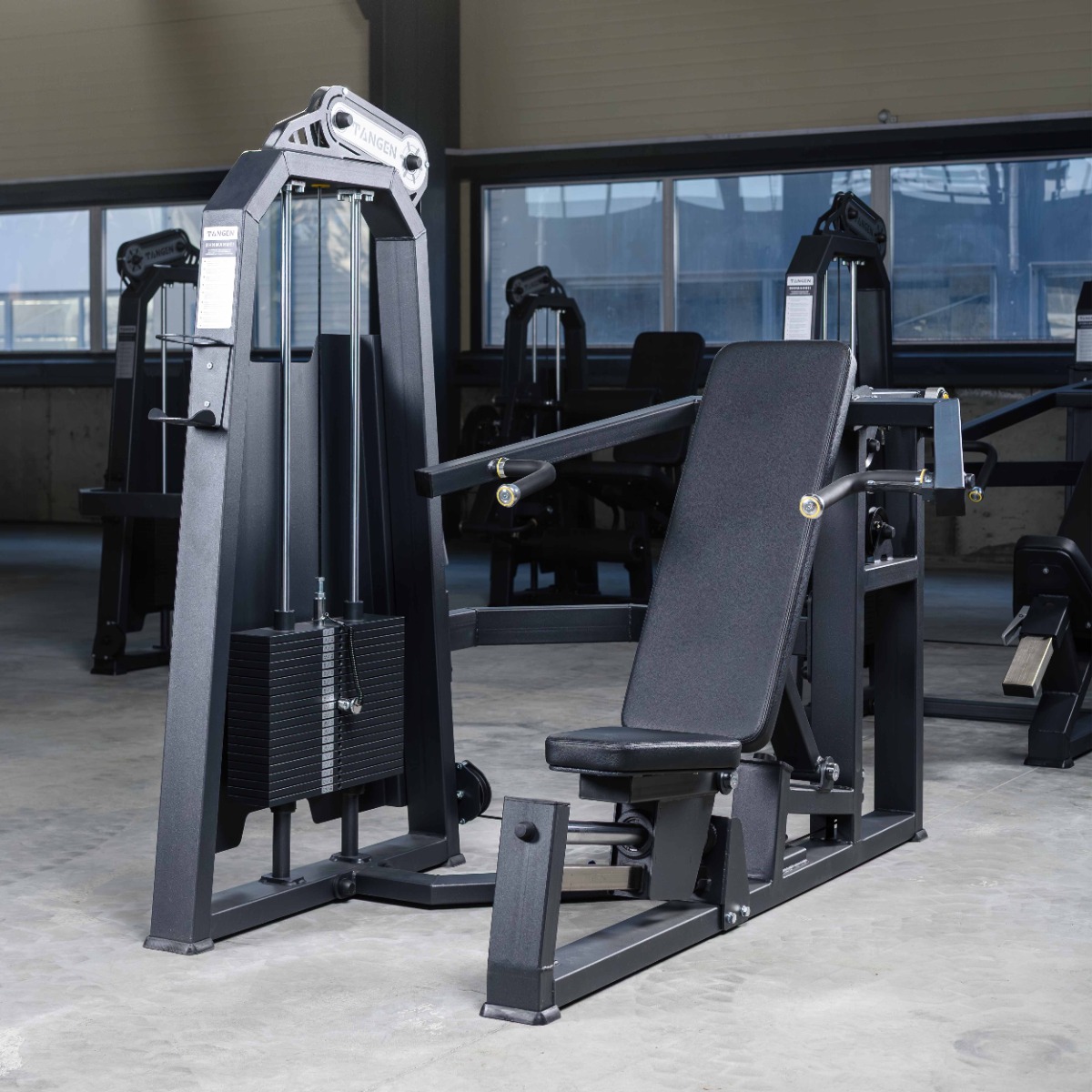 Профессиональный тренажёр TANGEN A2084 Жим от груди и плеч предназначен для тренировки грудных мышц, дельтовидных и трицепсов. Конструкция объединяет функции жима от груди и жима вверх, обеспечивая возможность проработки разных сегментов грудного пояса за счёт изменения угла наклона спинки и траектории движения рычагов.