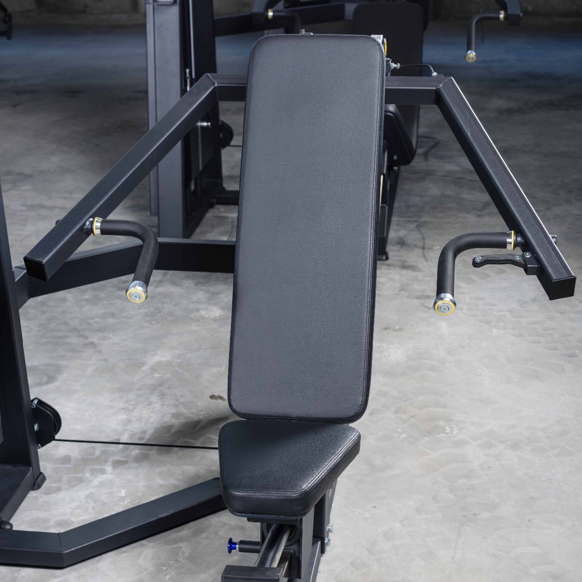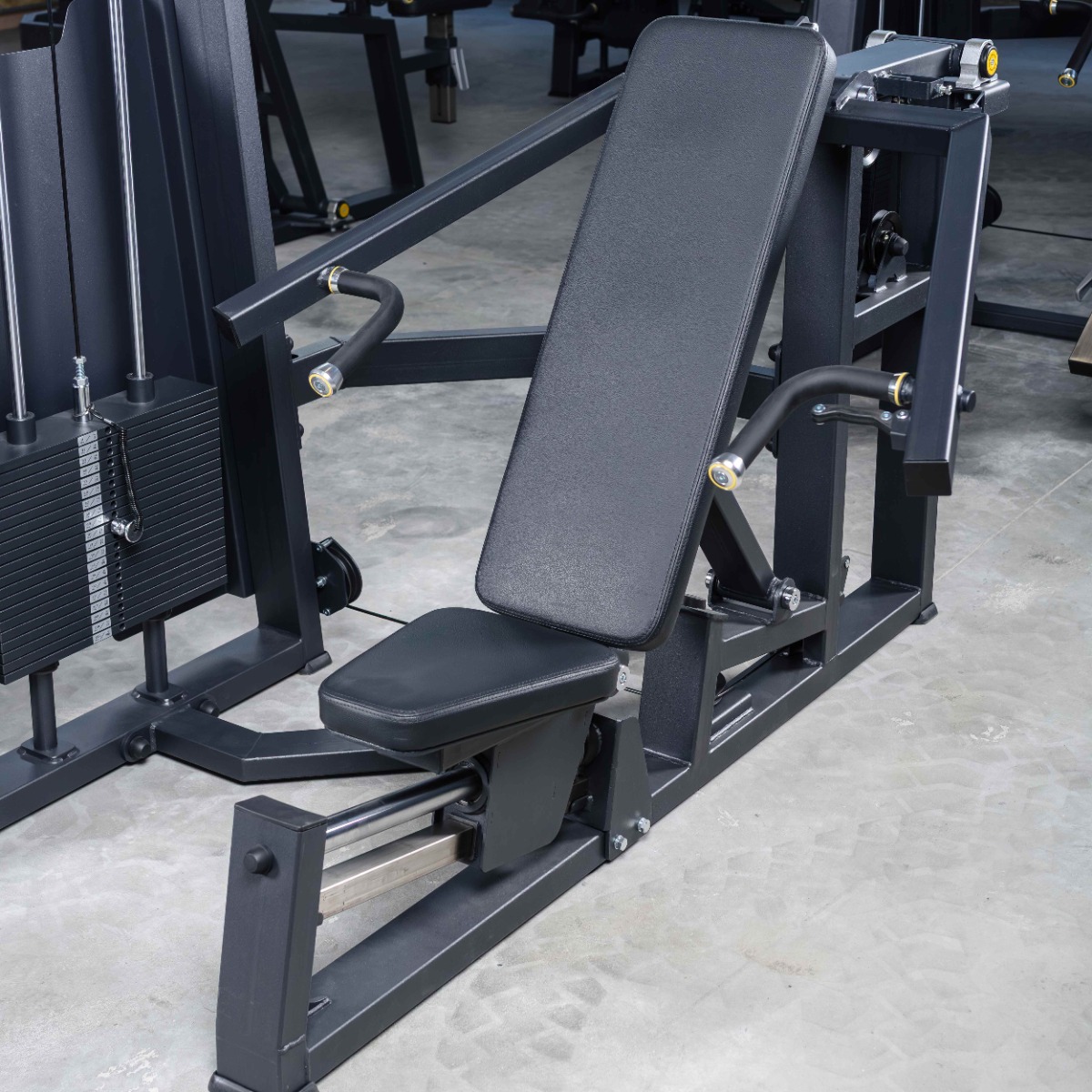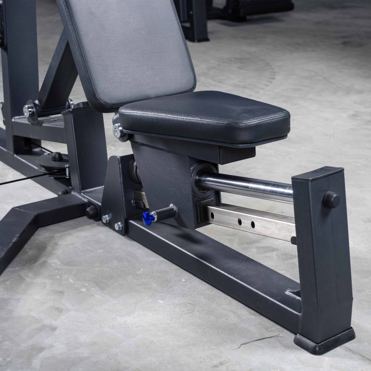 Регулируемый узел сиденья и спинки выполнен в единой направляющей системе. Изменение угла осуществляется при помощи полуавтоматического фиксатора в четырёх фиксированных положениях (60°, 45°, 30°, 20°). Такая схема обеспечивает изменение положения корпуса без нарушения оси движения и оптимальное распределение нагрузки при каждом угле наклона, а также вариативность жимов.