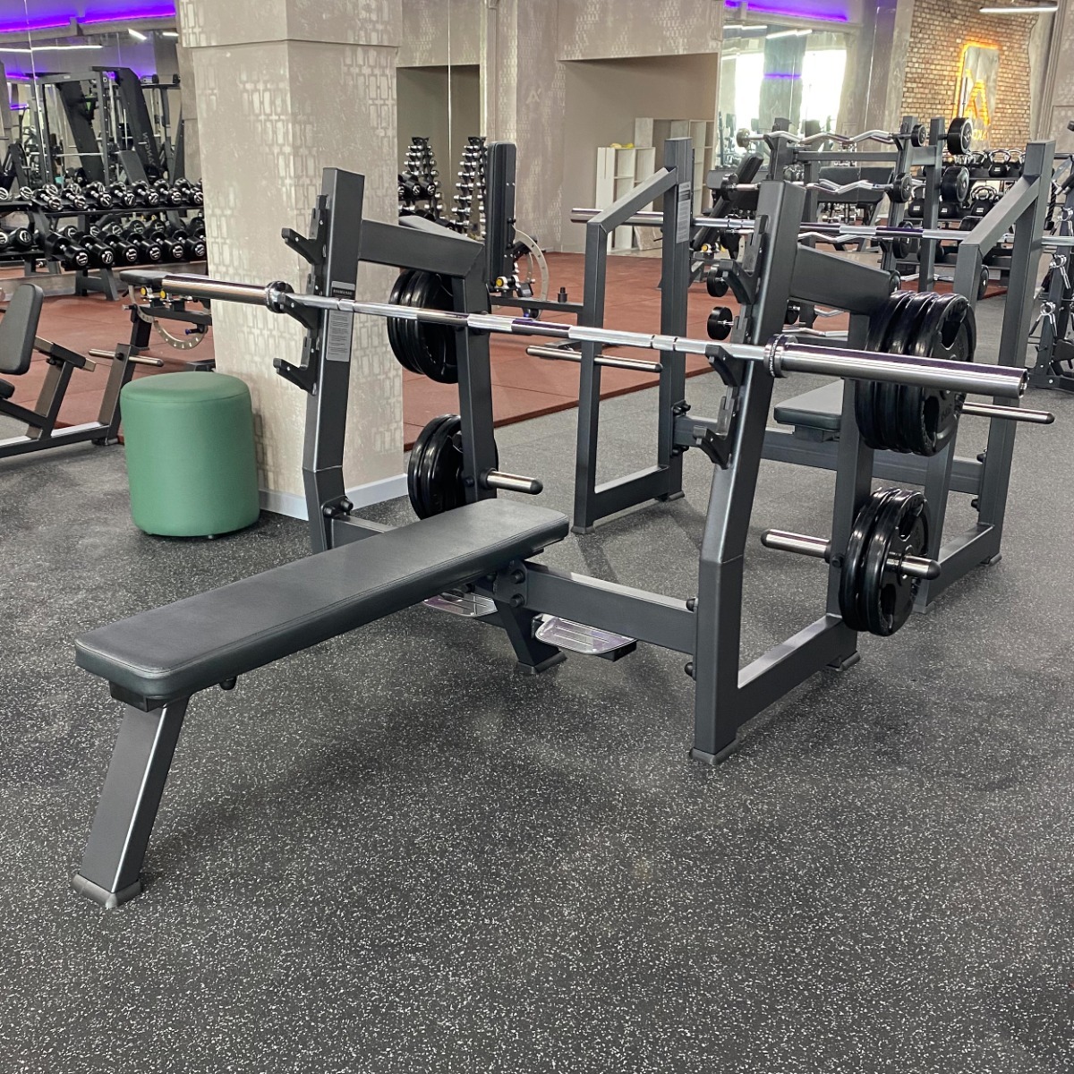 Олимпийская прямая скамья предназначена для выполнения упражнения, направленного на развитие мышц груди и дельтовидных мышц.