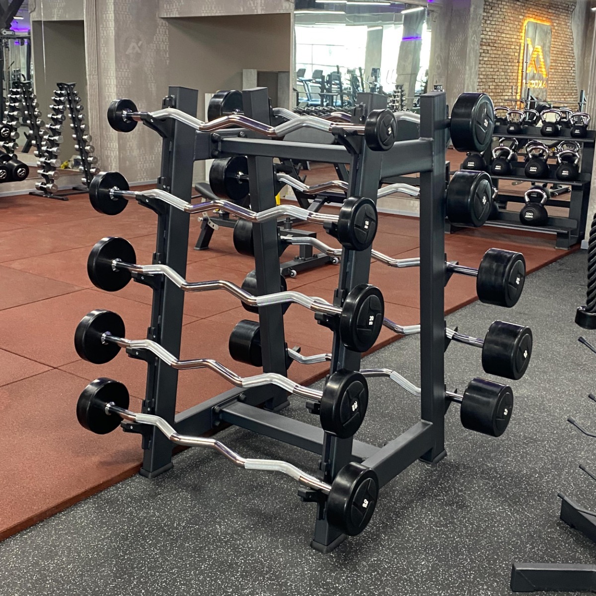 Стойка для штанг А3055 соответствует всем требованиям профессионального оборудования. Конструктивные элементы рамы изготовлены из высококачественной стали, покрыты износостойкой двухслойной полимерной краской. Толщина профиля 3 мм имеет большой радиус угла, что придает тренажеру более элегантный внешний вид. Резиновые подпятники обеспечивают устойчивость и предотвращают повреждение полового покрытия в помещении. Позволяет поддерживать порядок в зоне силовых тренировок, экономит место, обеспечивает безопасность хранения 10 фиксированных штанг.