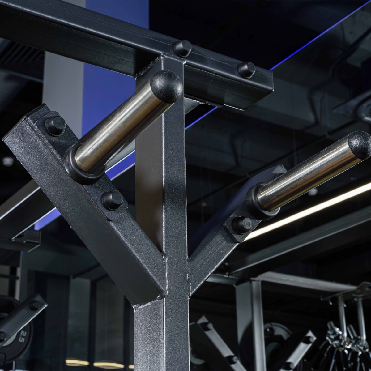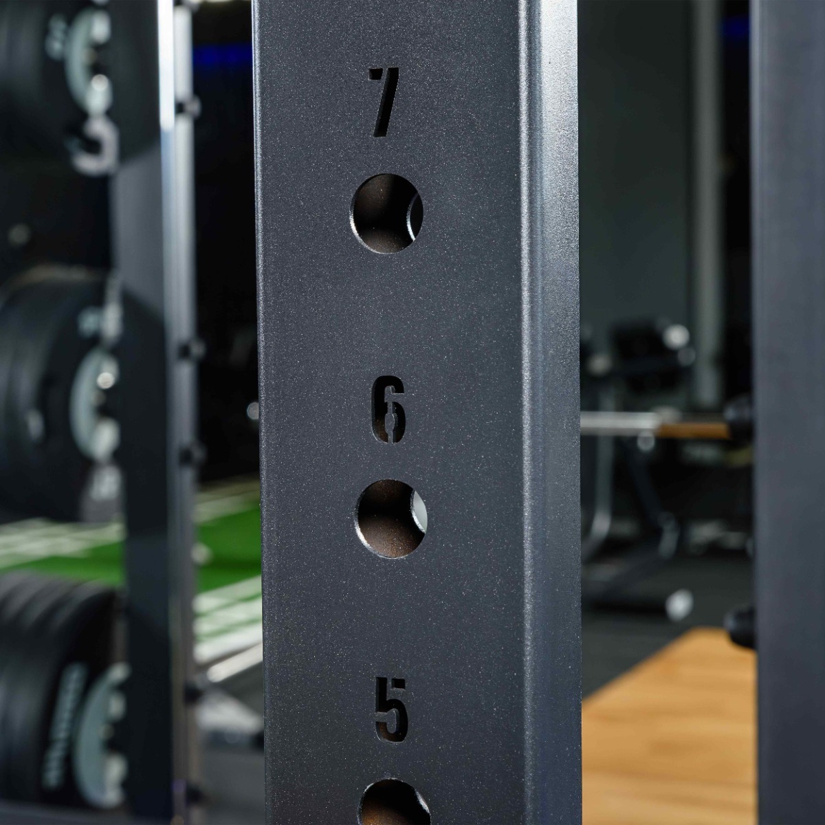 A-3081 Силовая рама (Power Cage) предназначена для безопасного занятия со штангой. Силовая рама оснащена регулируемыми по высоте страховочными упорами и фиксаторами для штанги, которые можно подстраивать под рост спортсмена или под конкретные тренировки, так же это позволяет установить скамью для выполнения упражнения жим
