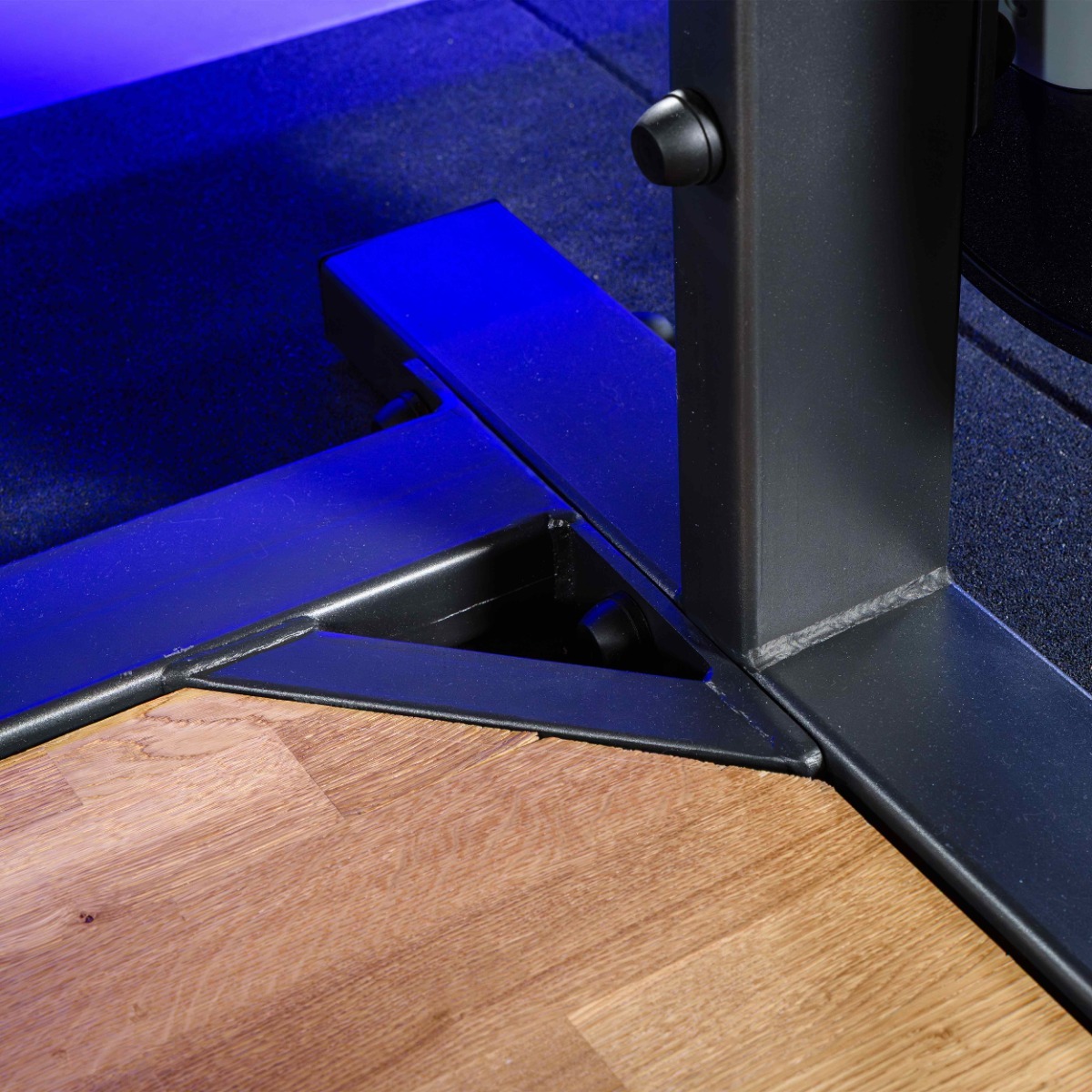 Несущая конструкция изготовлена из стального профиля 100х50 мм, толщина стенки 3 мм. Покраска рамы выполнена методом порошковой окраски. Для устранения повреждения напольного покрытия рама установлена на пластиковые опоры.