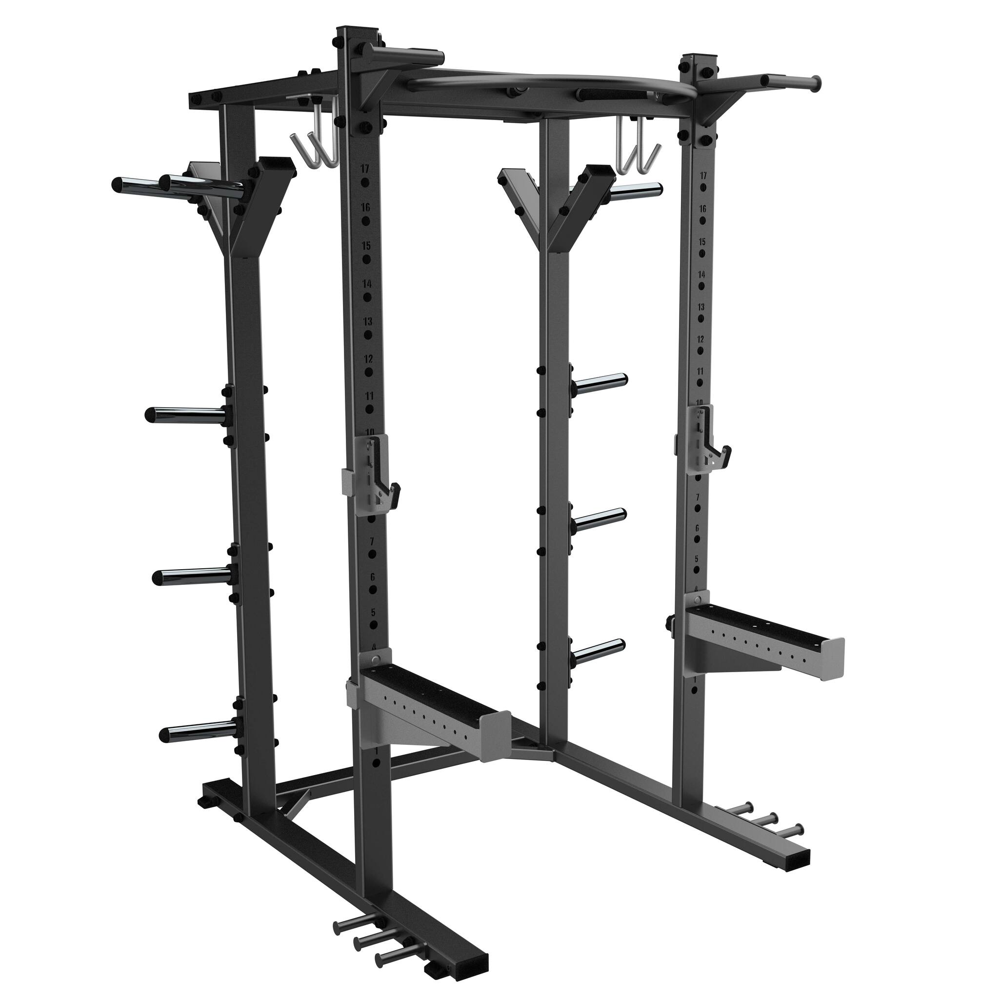 Силовая рама состоит из следующих основных элементов:Стойки перфорированные – 2 шт.Перемычка – 2шт.Перемычка-турник – 1 шт.Страховочные упоры – 1 комплект. Крюки для штанги – 1 комплект.Кронштейн верхний – 2 шт.Многопозиционные рукоятки – 2шт. Кронштейн для дисков – 10 шт.Держатель для штанги с крюками – 2 шт.Кронштейн тройной для эспандеров – 2 шт.