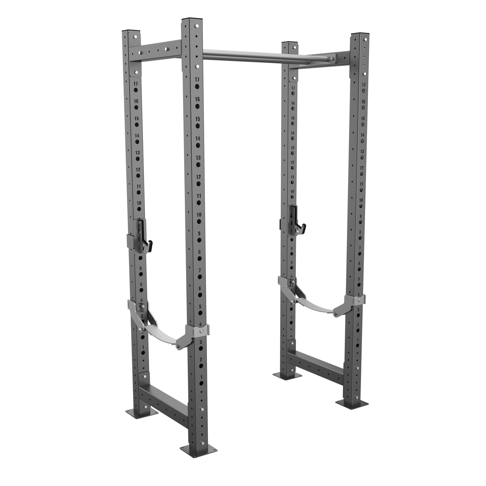 Силовая рама оснащена регулируемыми по высоте страховочными упорами и фиксаторами для штанги, которые можно подстраивать под рост спортсмена или под конкретные тренировки, так же это позволяет установить скамью для выполнения упражнения жим из положений сидя или лежа. Вверху силовой рамы расположен турник с двумя перекладинами разного диаметра. Страховочные упоры сделают упражнения со штангой более безопасными и менее травмоопасными для спортсменов.