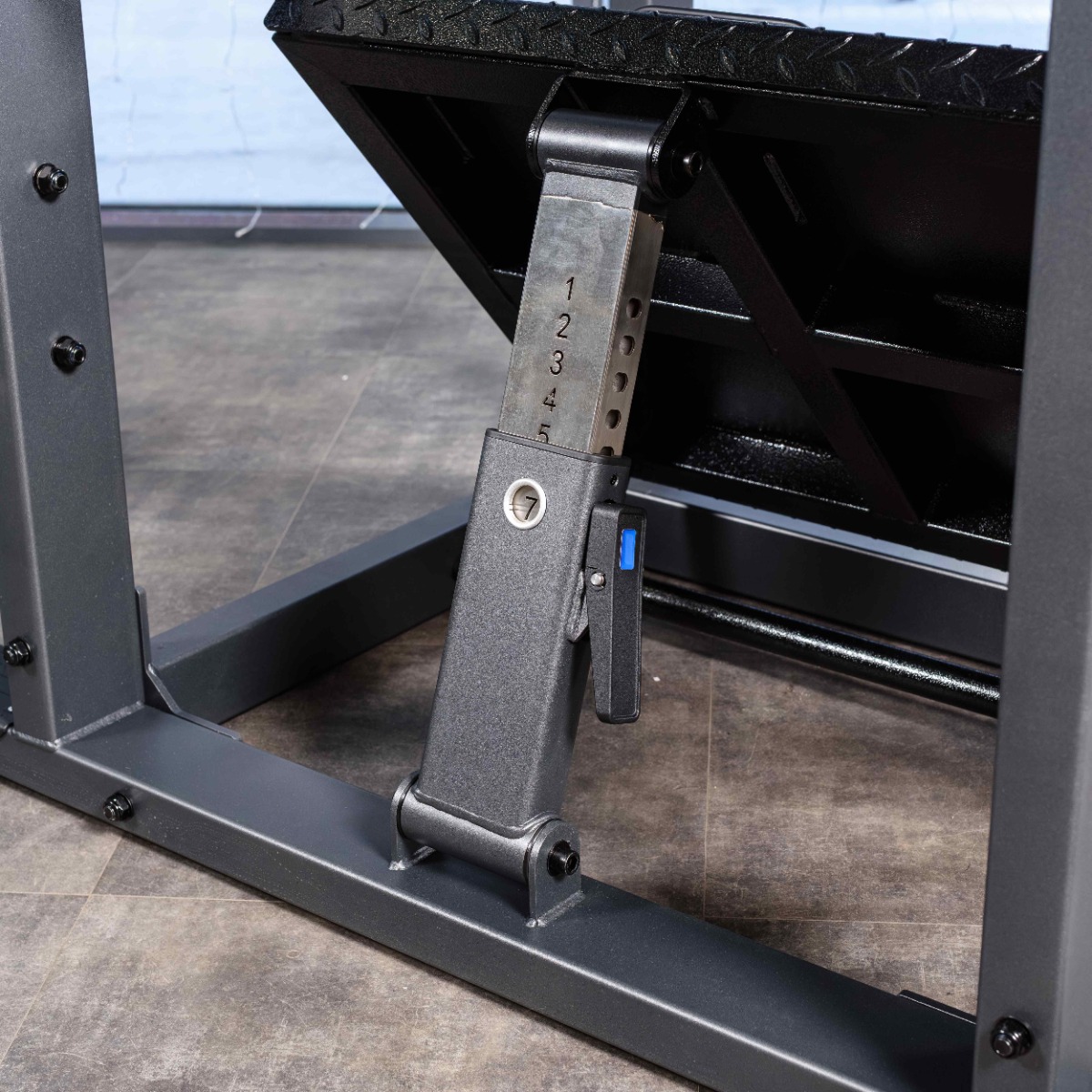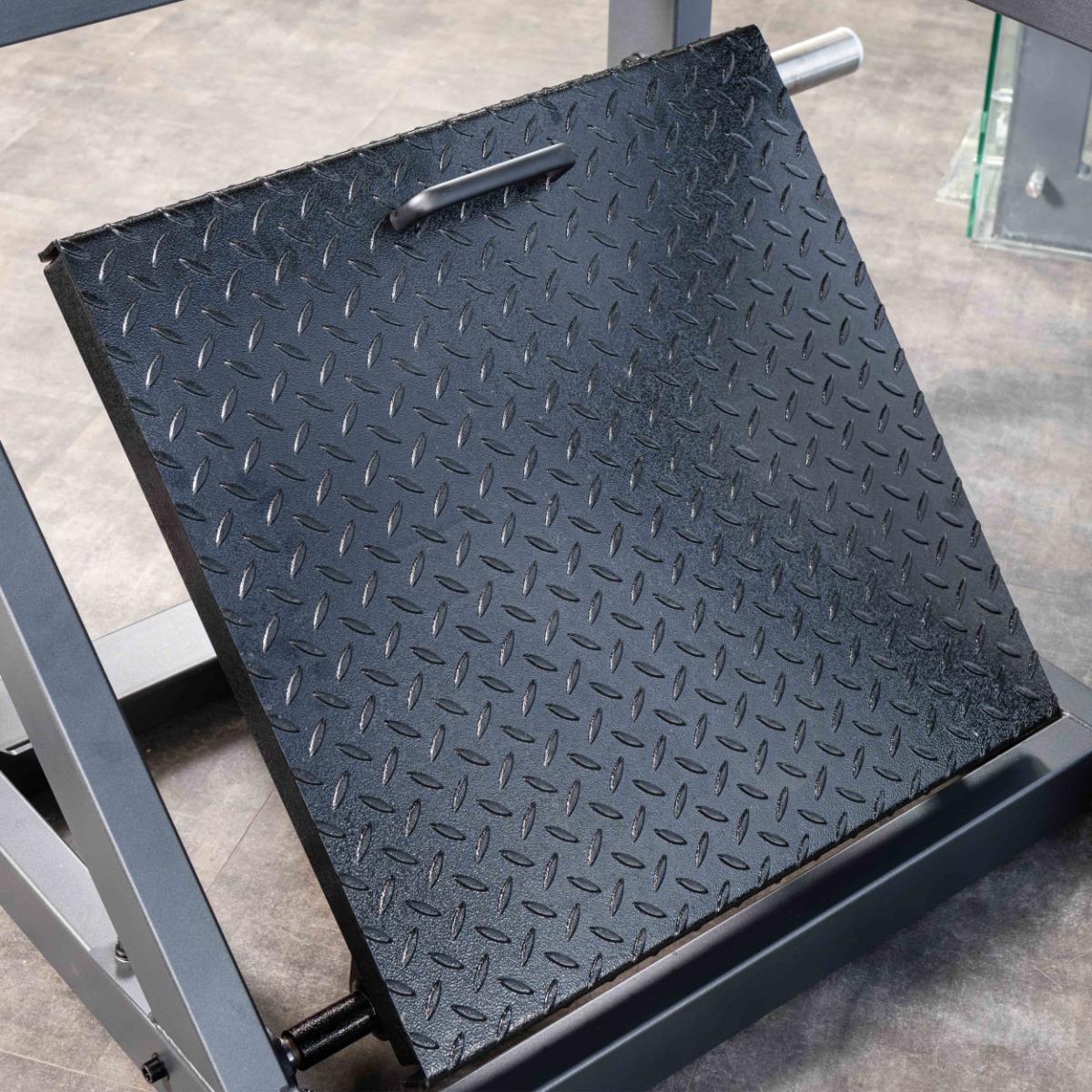 Платформа для ног выполнена из рифлёного листового металла со скруглёнными краями. Платформа регулируется только по углу наклона при помощи полуавтоматического фиксатора в семи фиксированных положениях.