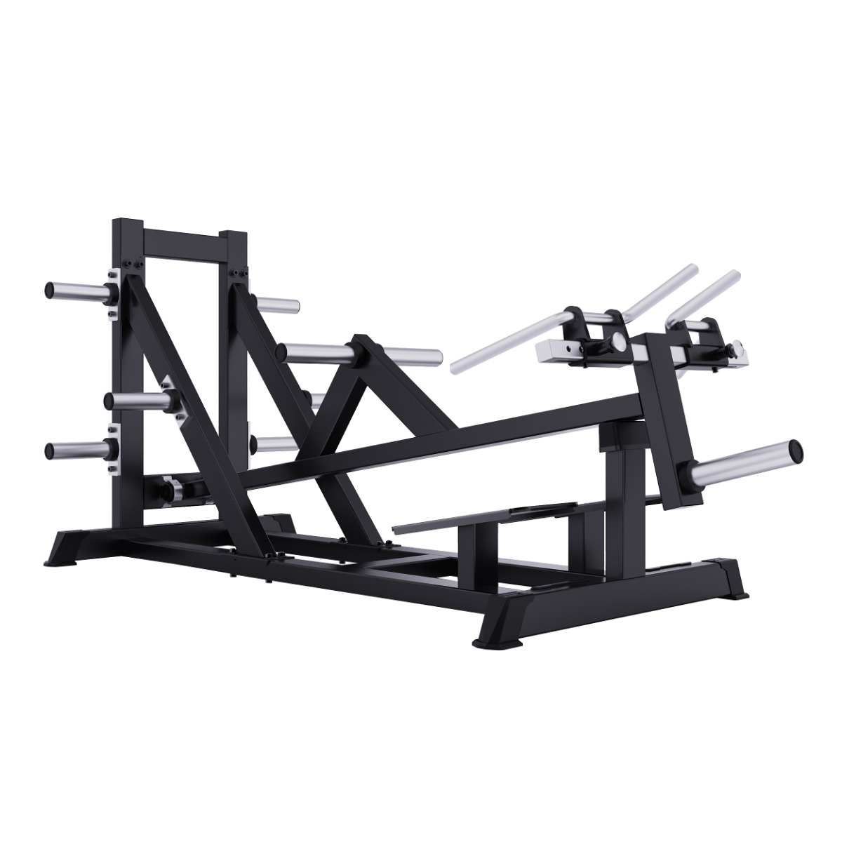 Профессиональный тренажёр для коммерческого использования A617 Т-образная тяга с упором на ноги предназначен для акцентированной проработки широчайших мышц спины, ромбовидных, задних дельтовидных и трапециевидных мышц. Конструкция обеспечивает стабильное положение корпуса, естественную траекторию тяги и вариативность хвата за счёт регулируемых рукоятей.