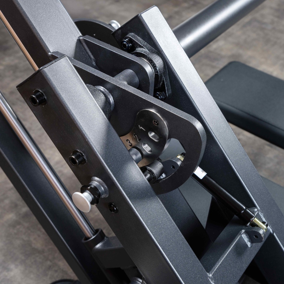 Угол наклона регулируется от почти вертикального (для выполнения движения, аналогичного подъёму ноги вверх) до диагональных положений, имитирующих классическое движение в глют-машине.