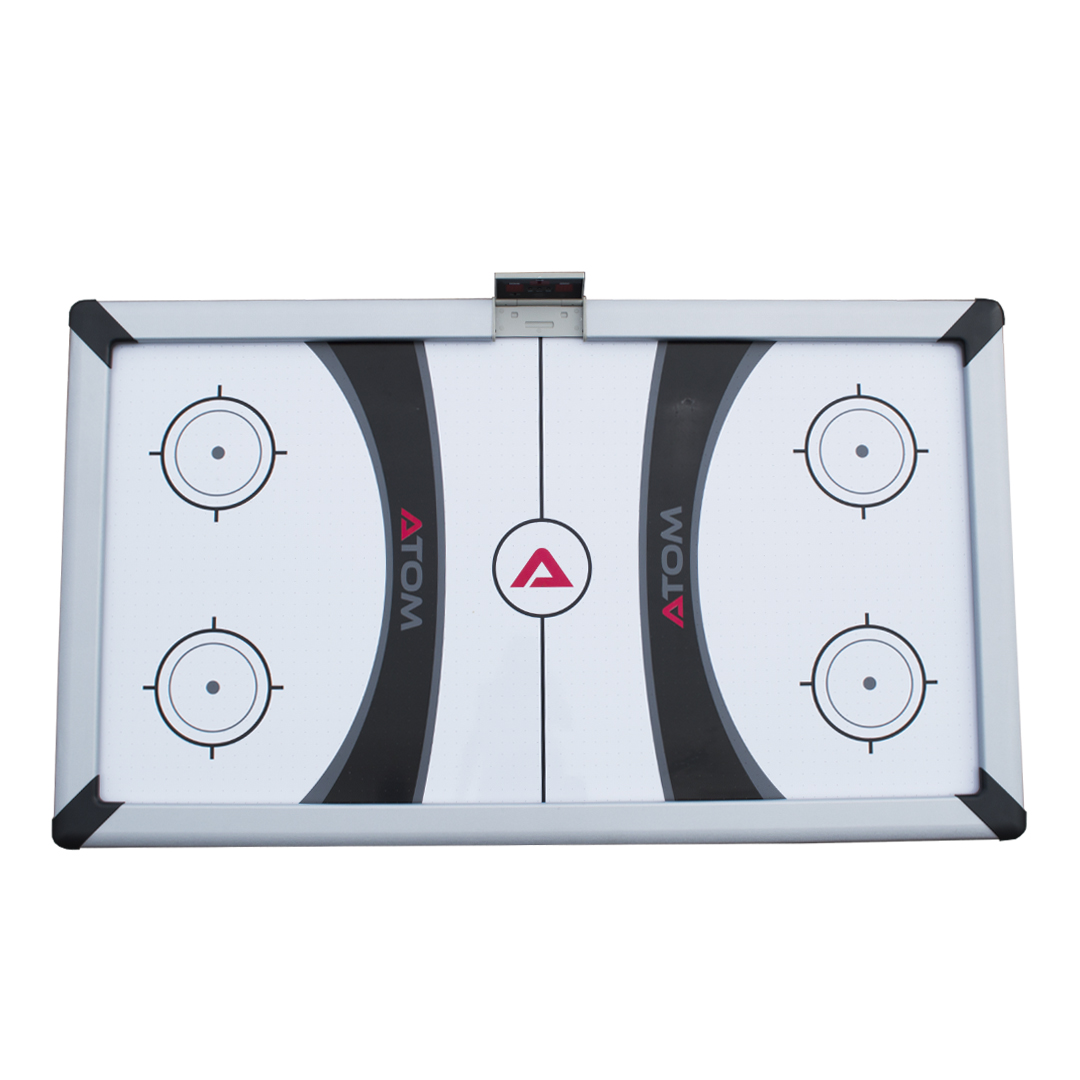 Аэрохоккей «ATOM» домашнего класса снабжен всем необходимым для игры и не требует приобретения дополнительных аксессуаров. У стола мощный компрессор, за счет чего шайбы скользят плавно и быстро. Четкие линии и строгие тона не отвлекают от игры и позволяют сконцентрироваться на ней целиком и полностью.