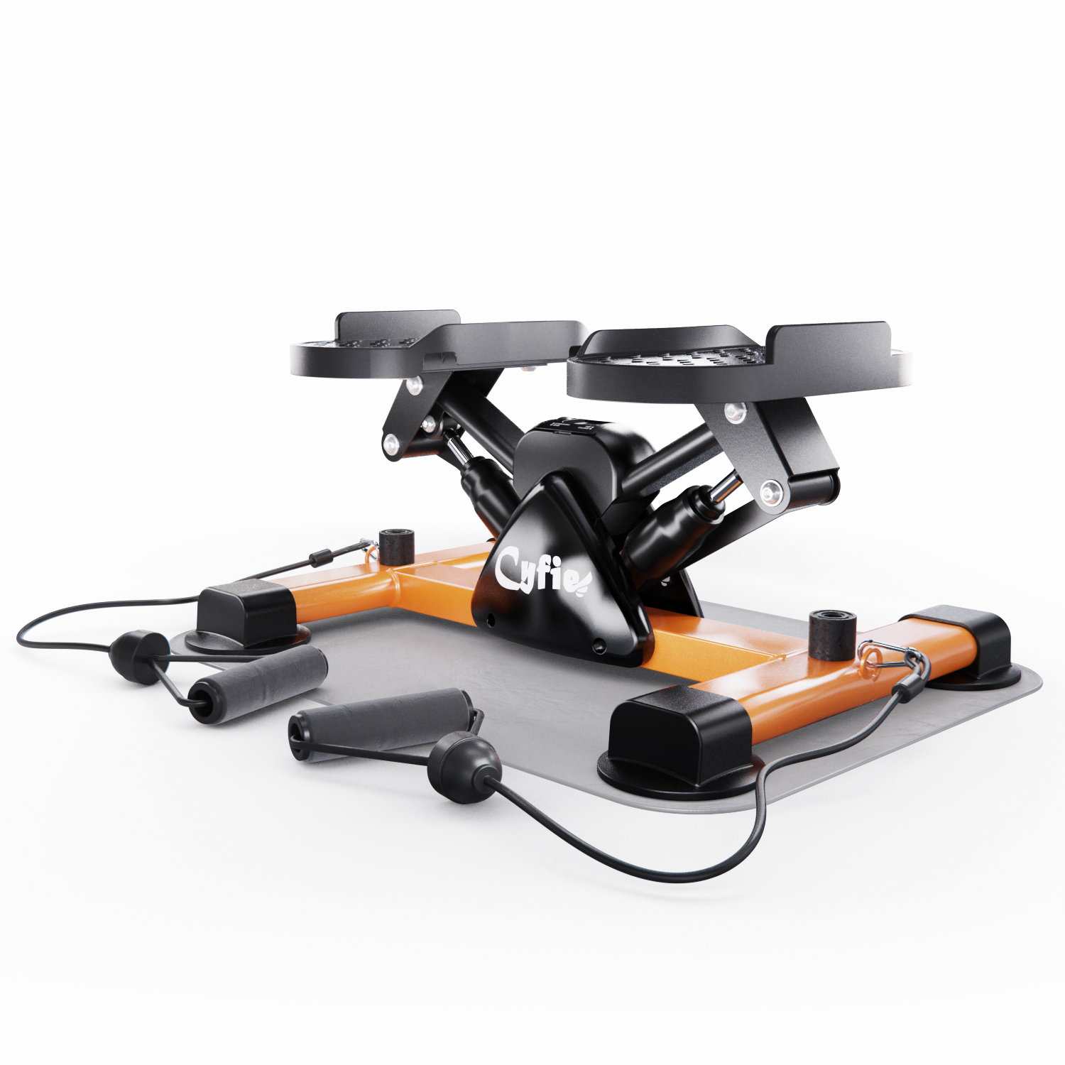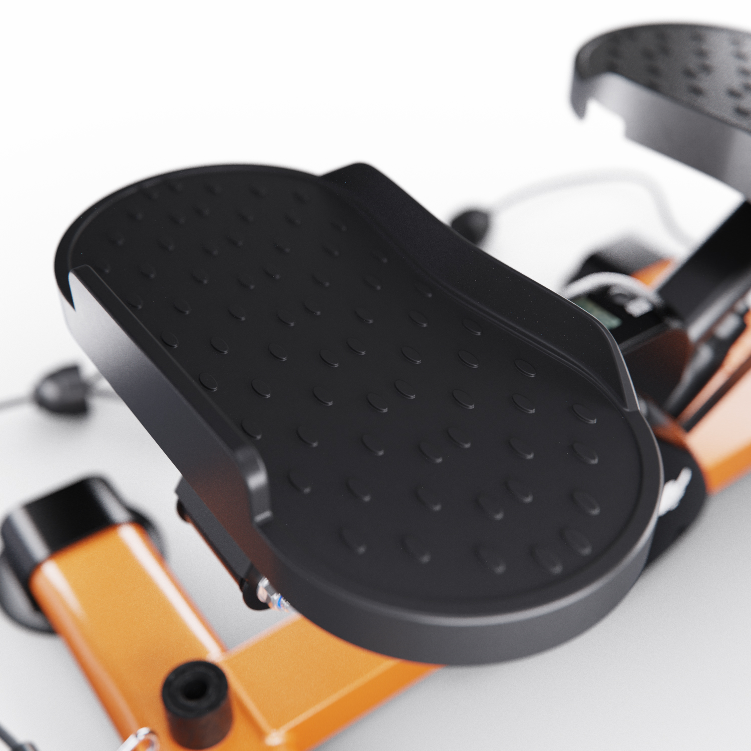 Балансировочный степпер с ковриком и эспандерами DFC CYFIE — идеальный тренажер для ног, который сочетает в себе функциональность, эффективность и стильный дизайн. Этот компактный степпер тренажер для дома позволит вам тренироваться в комфортных условиях, укрепив сердечно-сосудистую систему и проработав основные группы мышц: бедра, икры и верхнюю часть тела. Модный и яркий оранжевый цвет создает позитивную атмосферу, поднимая настроение во время занятий. Максимальный вес пользователя для занятий на степпере равен 100 кг. Использование высококачественного гидравлического цилиндра обеспечивает долговечность и минимальный уровень шума во время тренировки. Степер имеет небольшой размер 54 x 34 x 26 см и легко помещается в углу комнаты, что делает его отличным выбором для небольших пространств. Рифленые педали размером 27 x 12 см обеспечивают надежное сцепление с обувью и предотвращают скольжение во время упражнений, обеспечивая безопасность. Регулируемая высота педалей от 18 до 31 см позволяет индивидуально настраивать степпер под необходимую нагрузку и уровень комфорта пользователя. Оптимальное расстояние между педалями 16,5 см обеспечивает естественное положение ног во время тренировок, что способствует правильной биомеханике движений. Это минимизирует нагрузку на суставы, позволяя избежать чрезмерного напряжения в стопах и голенях. Степпер тренажер оснащен монохромным LCD дисплеем, который отображает ключевые параметры во время тренировки: время, калории, количество шагов , количество шагов в минуту и режим сканирования. Для работы дисплея потребуется 1 батарейка типа AAA (в комплект не входит). В комплекте антивибрационный коврик размером 72 x 36,5 см для защиты пола и комфортной тренировки, а также эспандеры 76 см для одновременной проработки нижней и верхней части тела, что делает тренировки более разнообразными и эффективными. Резиновые накладки на нижней части министеппера предотвращают скольжение и повышают устойчивость, добавляя уверенности при выполнении упражнений. Балансировочный мини степпер тренажер DFC CYFIE — это универсальный тренажер для похудения, который станет отличным помощником в поддержании физической формы!