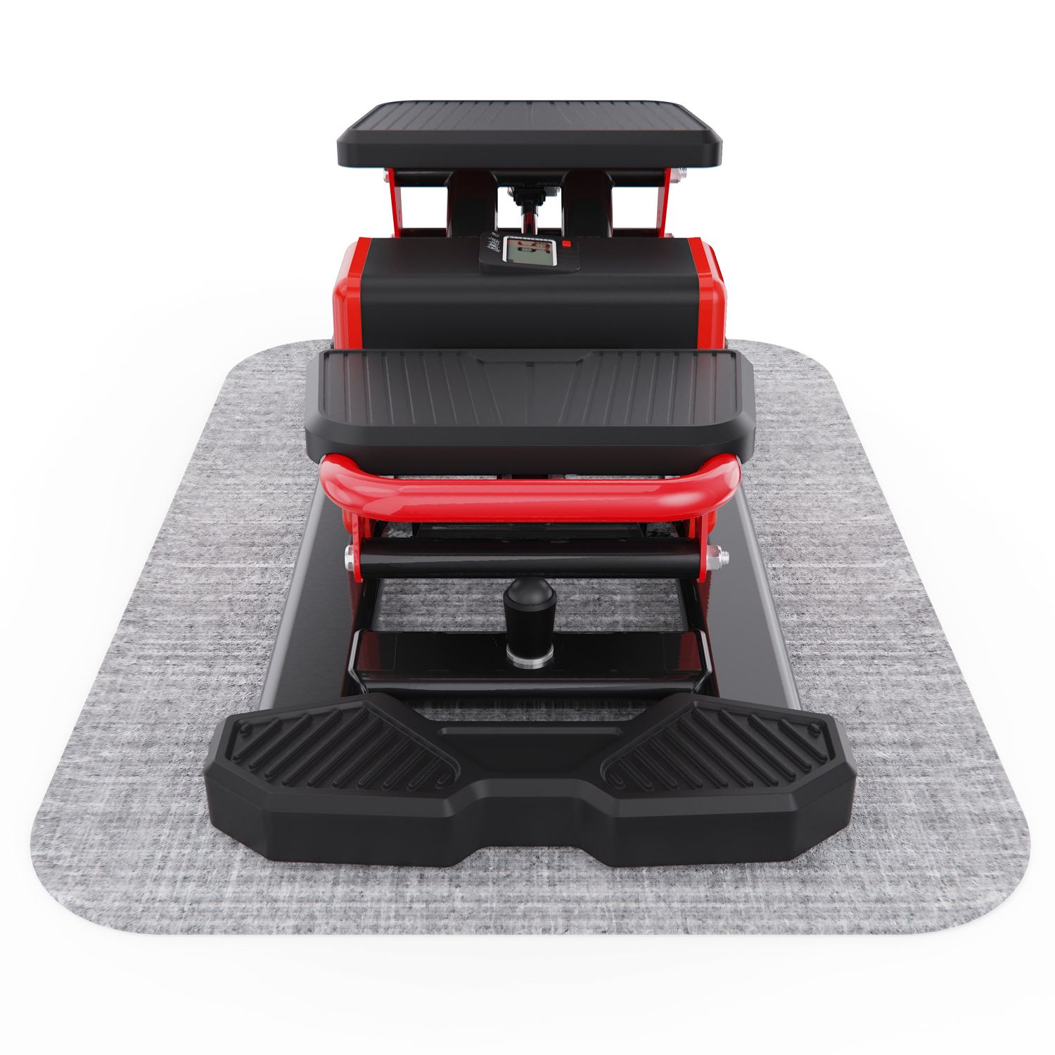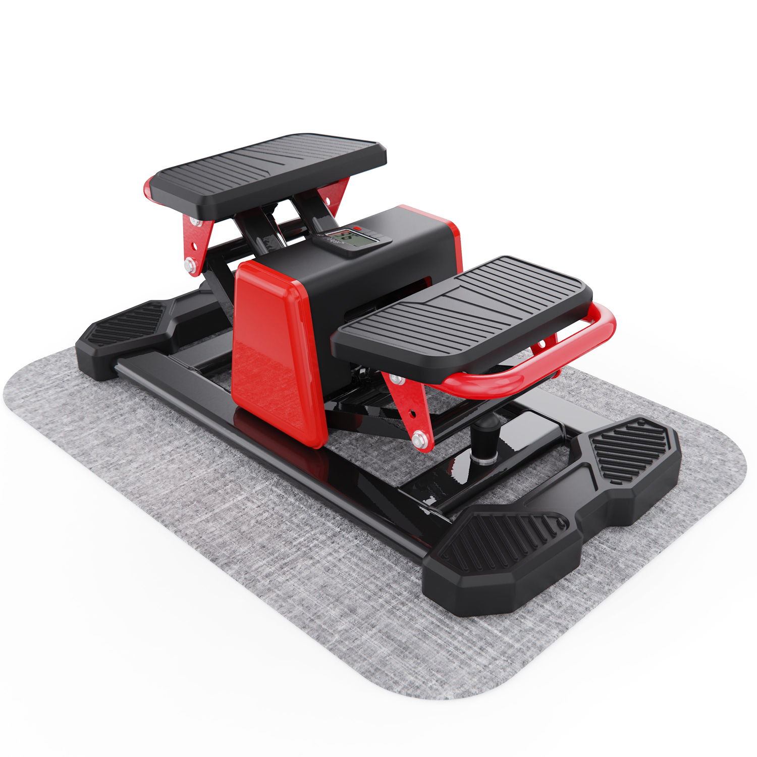 Высота педалей составляет от 18 до 29,5 см, что обеспечивает полноценное движение и позволяет эффективно прорабатывать ноги и ягодицы. Рифленые педали 29 х 15 см обеспечивают надежное сцепление с обувью, а расстояние между ними 30 см создаёт естественное положение ног и снижает нагрузку на суставы. В комплекте есть коврик для защиты пола и дополнительного комфорта во время занятий.