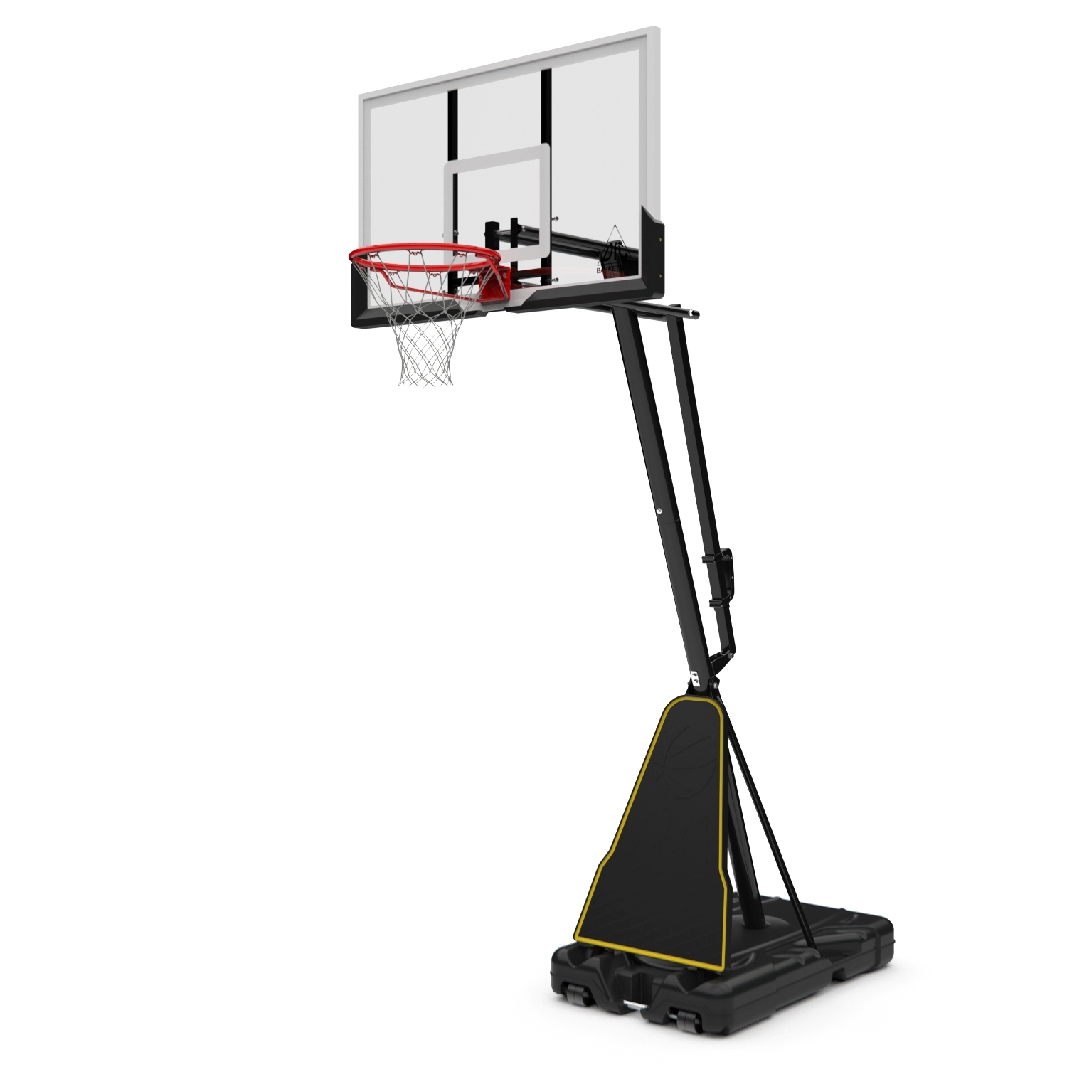 Портативные баскетбольные стойки серии DFC REACTIVE совмещают в себе мобильность и обеспечивают отскок мяча, как на профессиональной площадке. Благодаря усиленной конструкции удалось добиться увеличенного вылета щита, при сохранении компактности размещения. Он регулируется по высоте в диапазоне от 230 до 305 см, имеет защитное покрытие Poly Pade в нижней части. В основание стойки (объем 114,7 л) необходимо залить воду или засыпать песок в качестве утяжелителя.