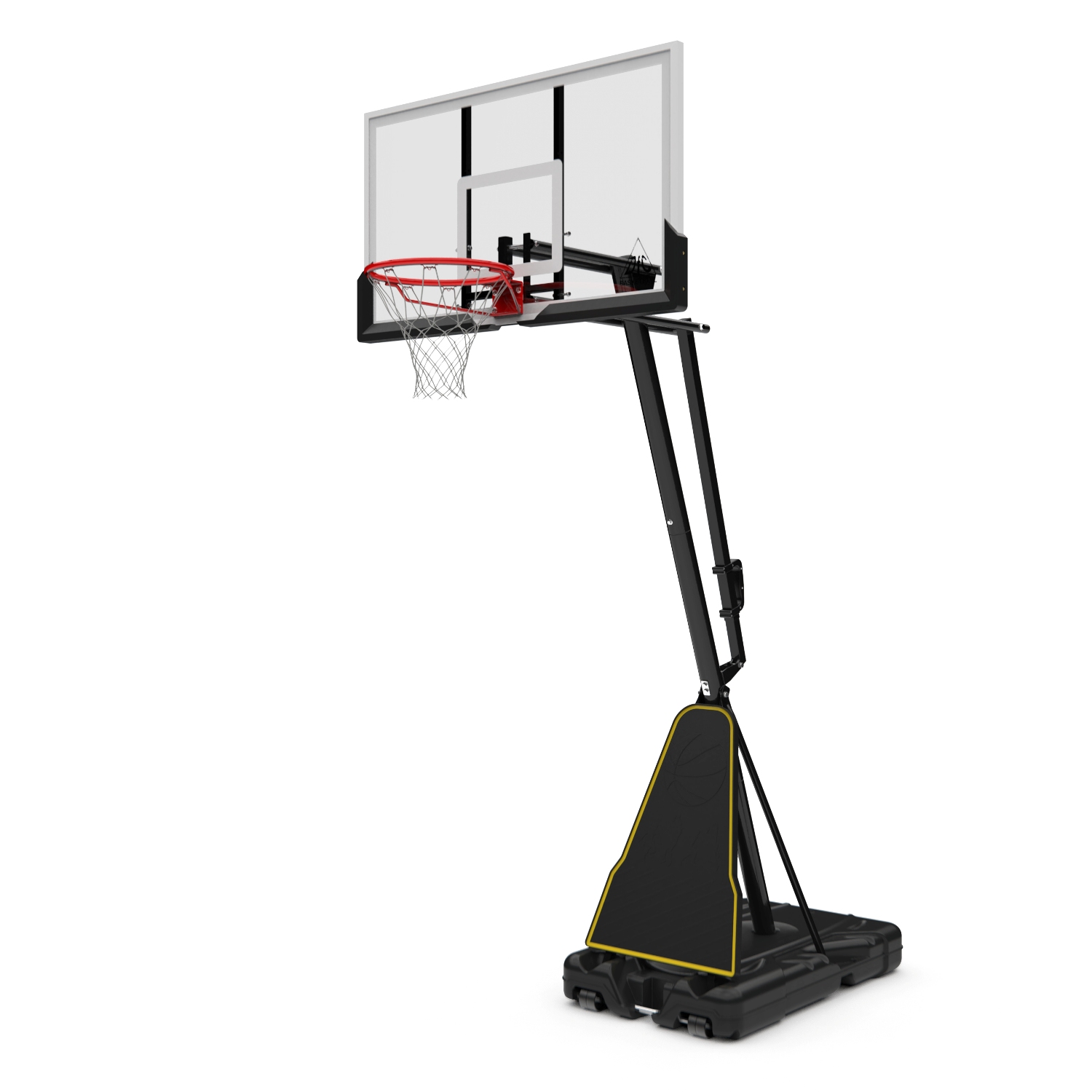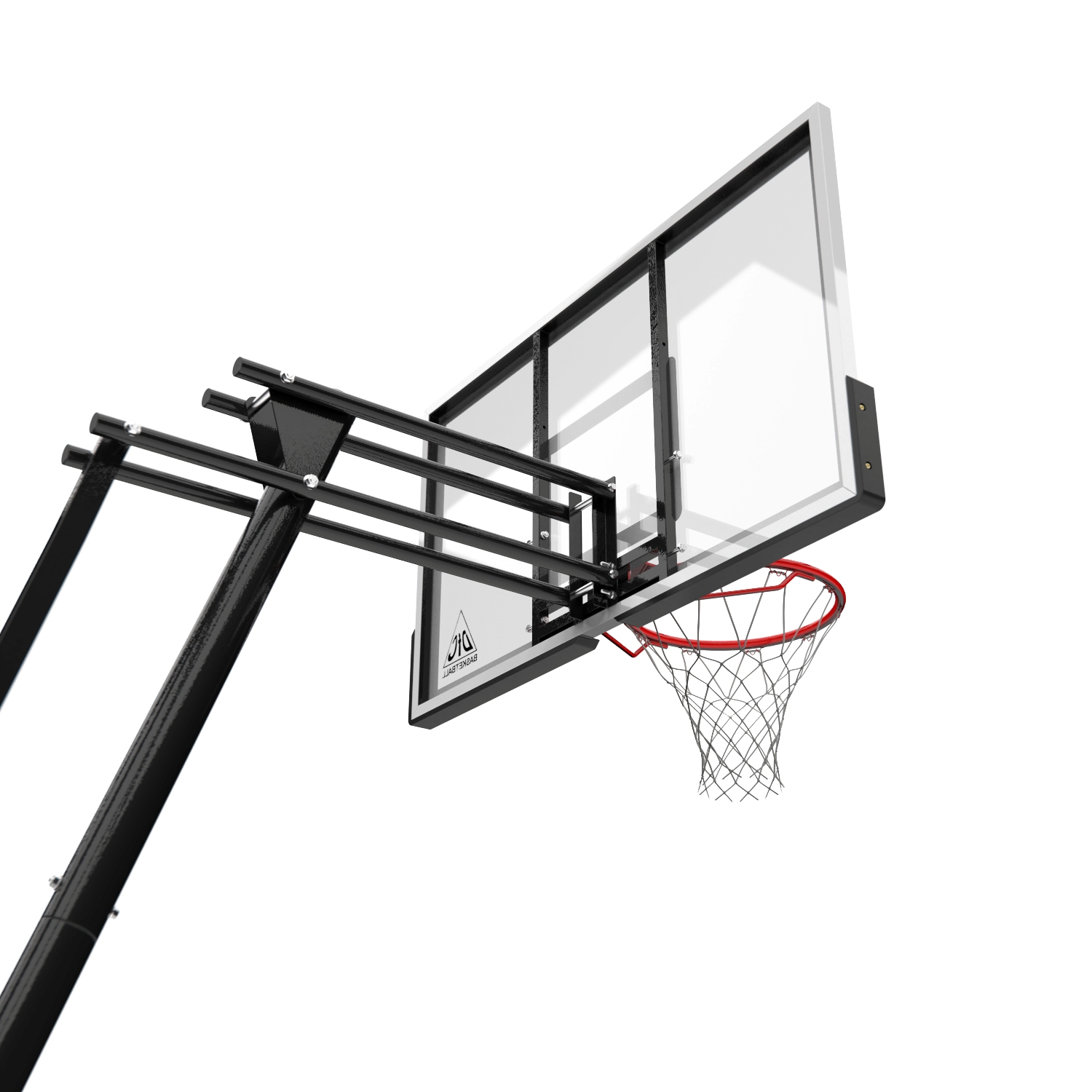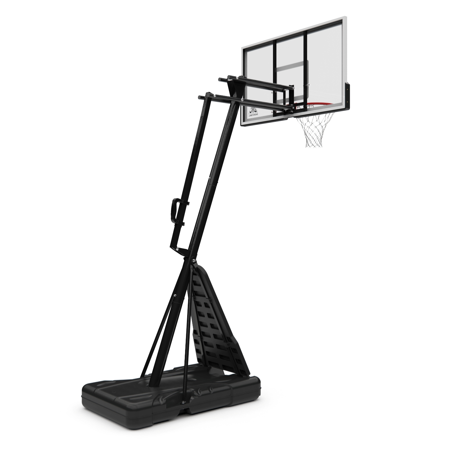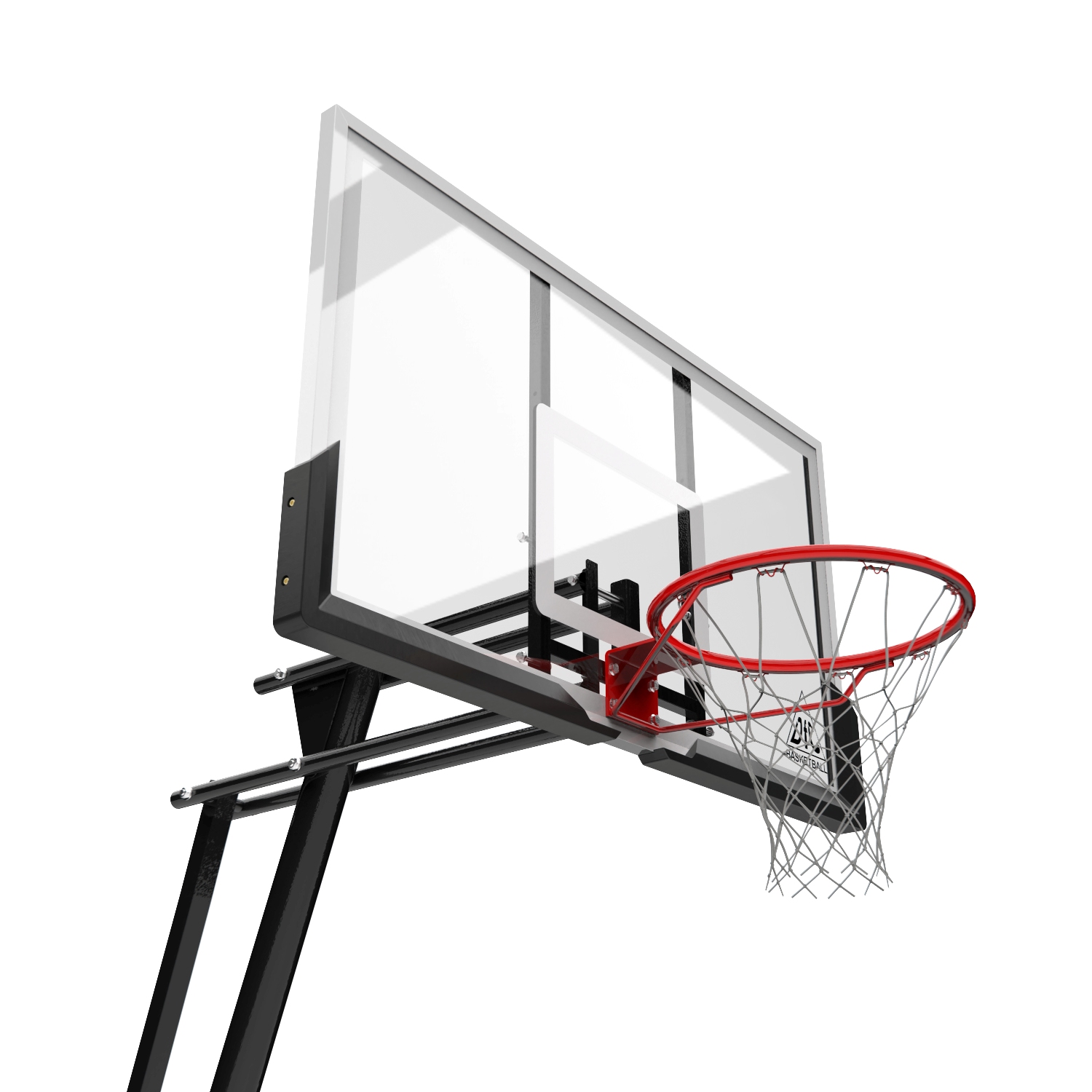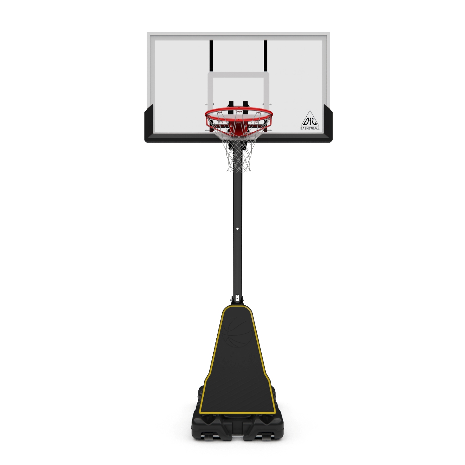 Портативные баскетбольные стойки серии DFC REACTIVE совмещают в себе мобильность и обеспечивают отскок мяча, как на профессиональной площадке. Благодаря усиленной конструкции удалось добиться увеличенного вылета щита, при сохранении компактности размещения. Он регулируется в диапазоне от 230 до 305 см, имеет защитное покрытие Poly Pade в нижней части. В основание стойки (объем 114,7 л) необходимо залить воду или засыпать песок в качестве утяжелителя.