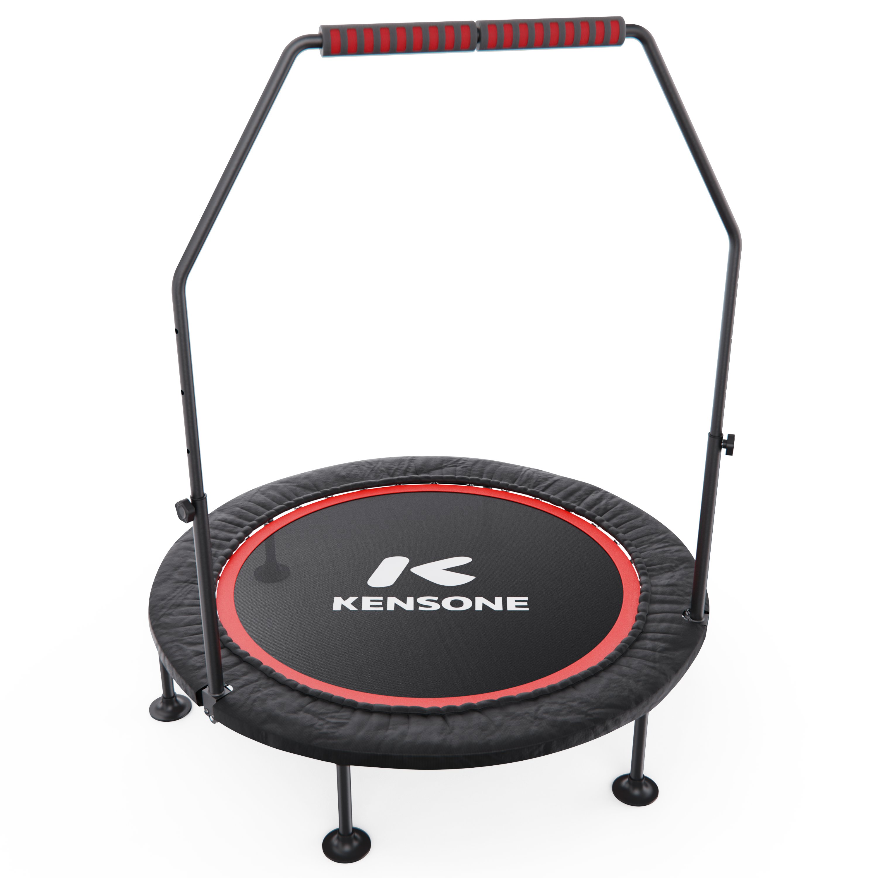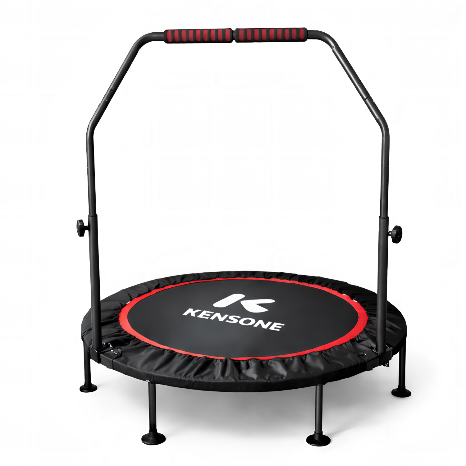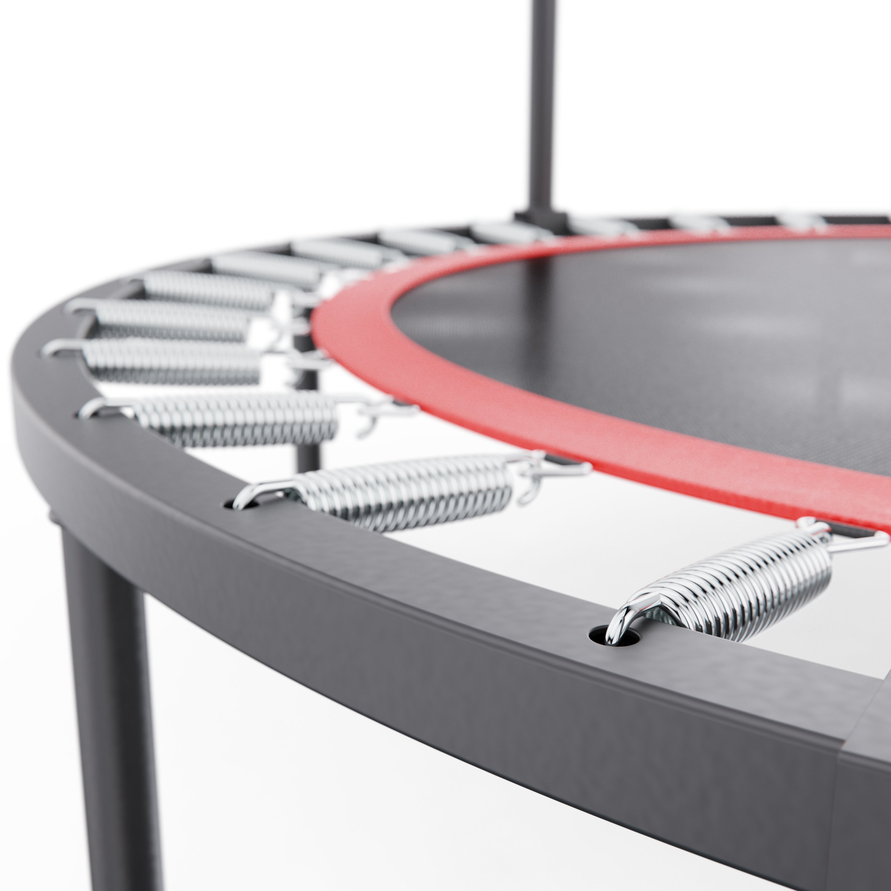 Батут оснащен регулируемым поручнем, который обеспечивает дополнительную поддержку и безопасность во время тренировок. Поручень регулируется по высоте на 5 уровней и может устанавливаться в диапазоне от 95 до 115 см, что позволяет легко настроить батут под рост пользователя и тип тренировки.