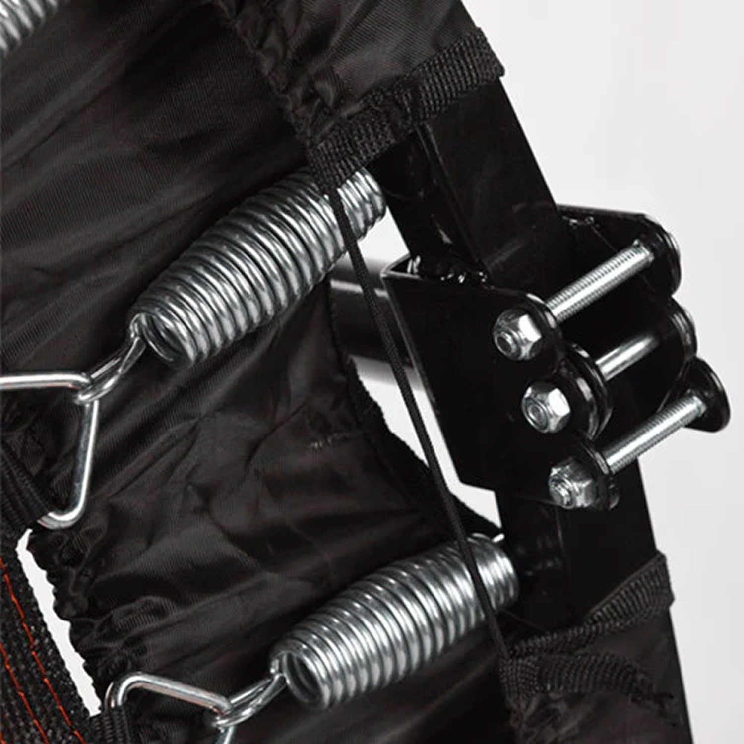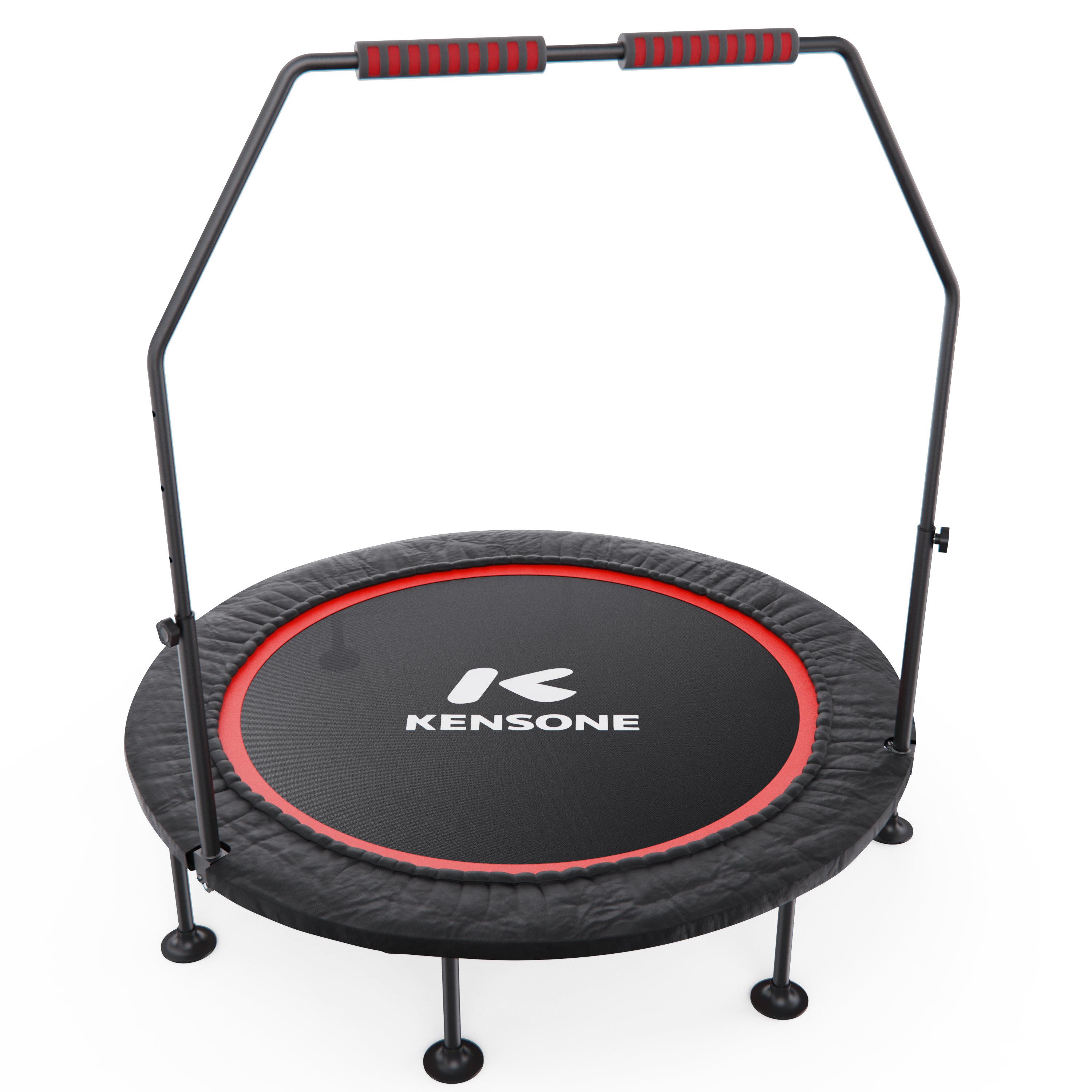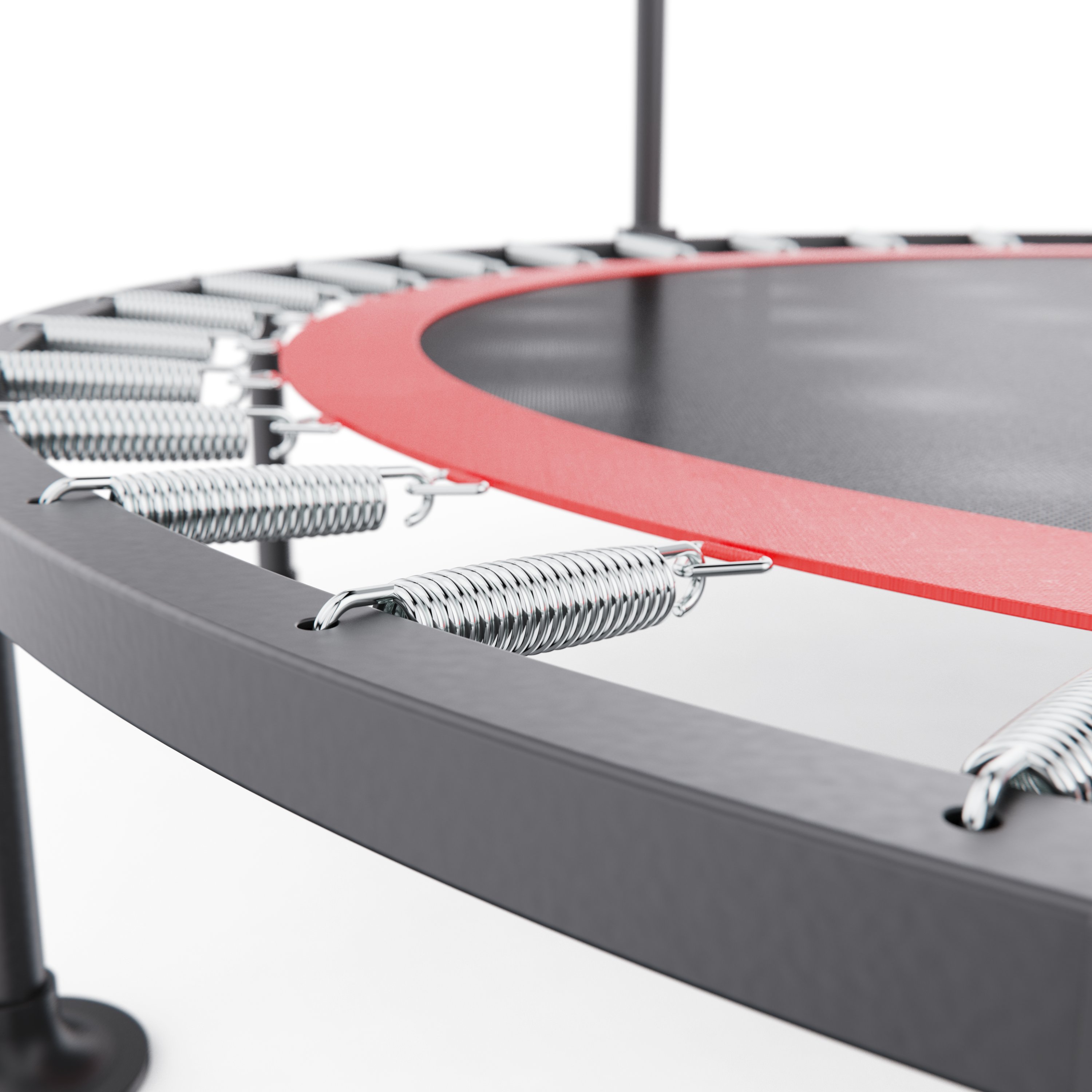 Батут оснащен регулируемым поручнем, который обеспечивает дополнительную поддержку и безопасность во время тренировок. Поручень регулируется по высоте на 5 уровней и может устанавливаться в диапазоне от 95 до 115 см, что позволяет легко настроить батут под рост пользователя и тип тренировки.
