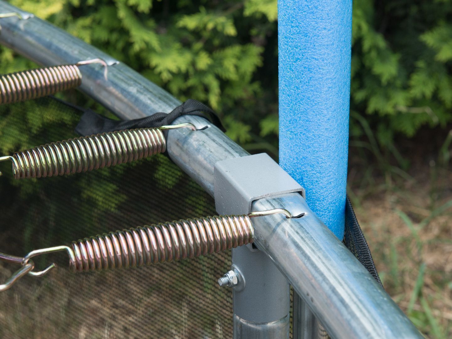 Рама батута изготовлена из оцинкованной стальной трубы Ø38 мм. Специальные кронштейны "T-Connector" квадратного сечения исключают случайный поворот или ослабление соединения со временем.