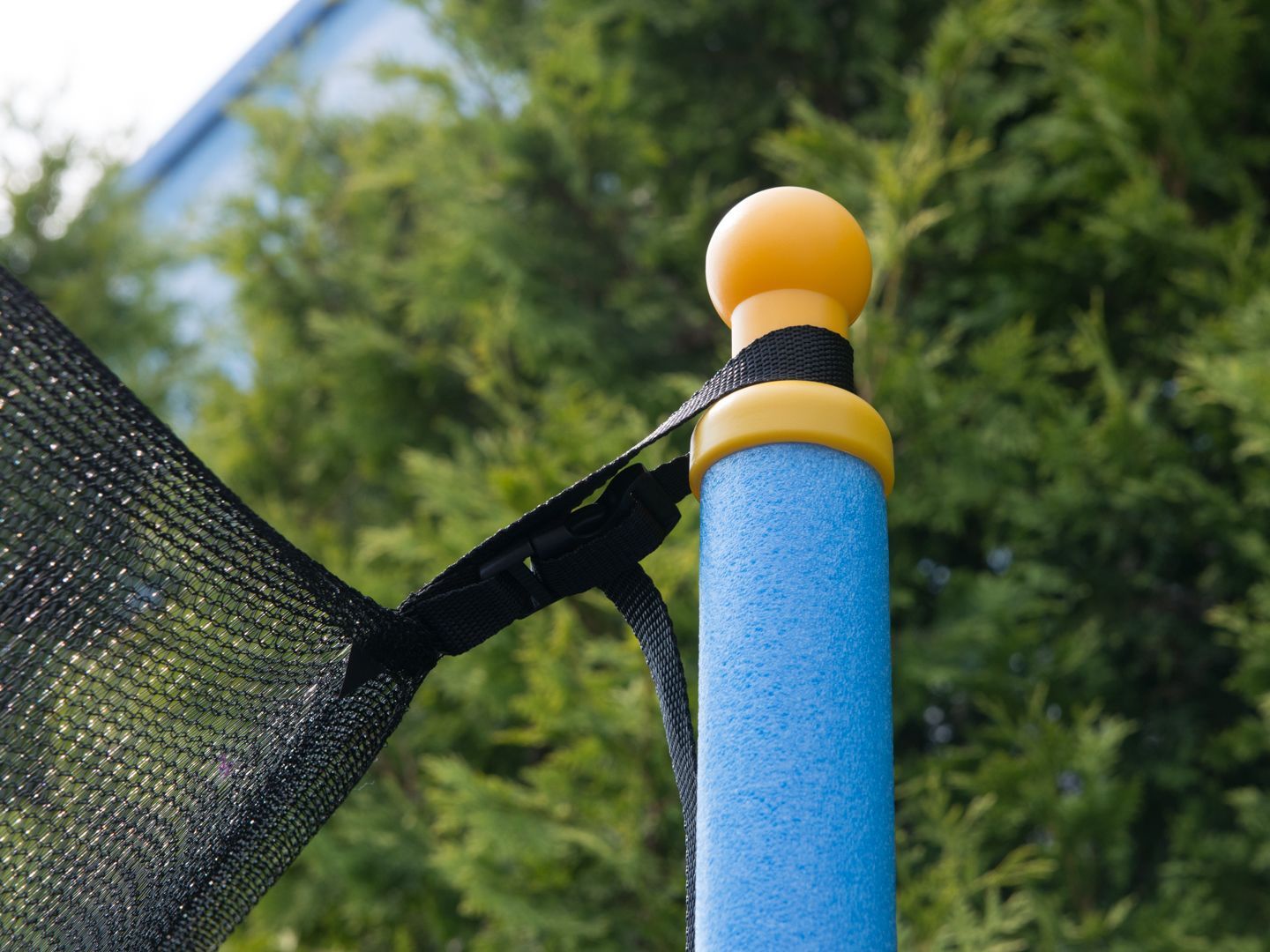 Вертикальные стойки крепления защитной сетки защищены вспененным неопреном, что делает их более безопасными.