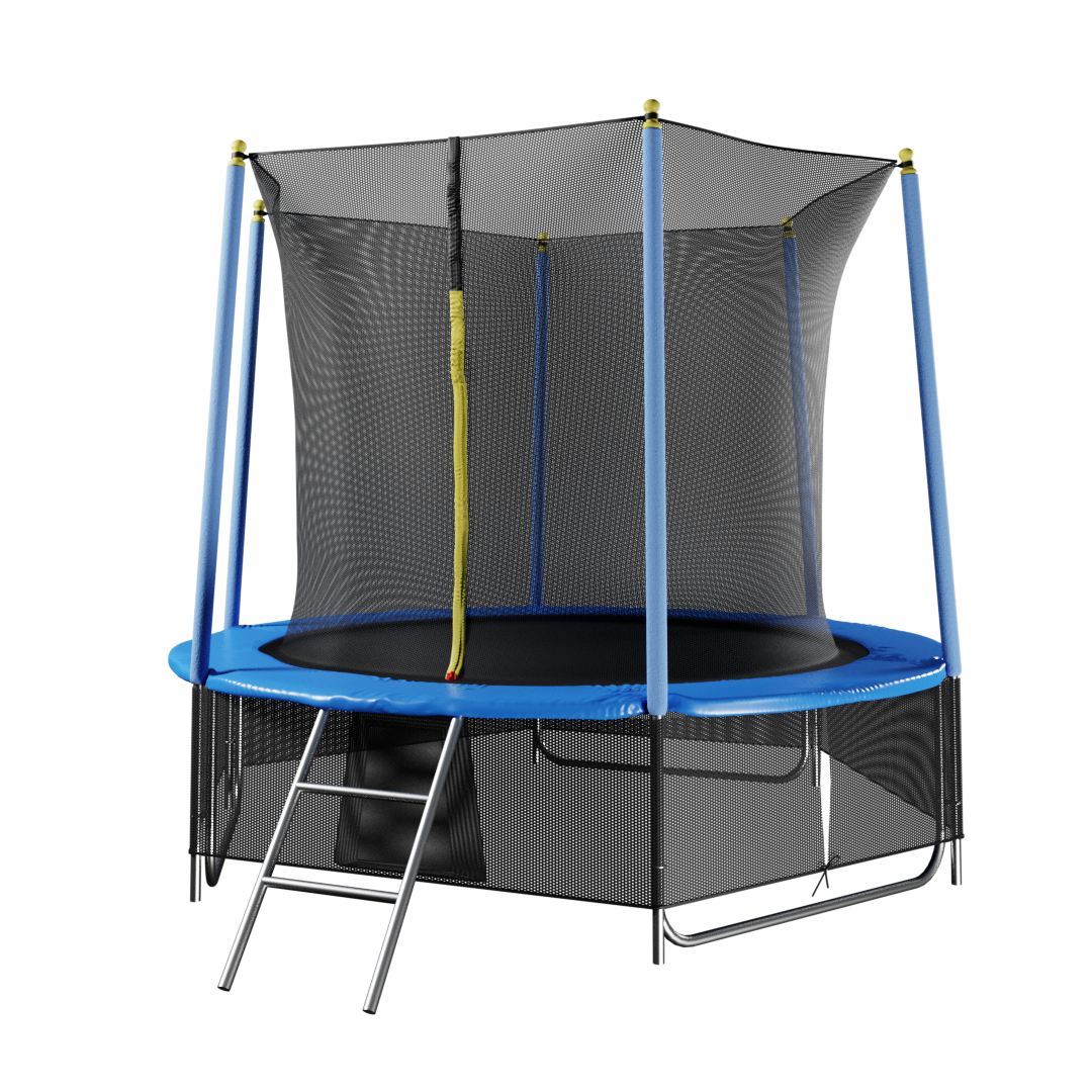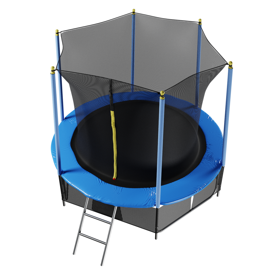 Каркасный батут диаметром 2,44 метра с верхней и нижней защитной сеткой и лесенкой в комплекте — отличный спортивный снаряд для активного отдыха. Предназначен для установки как в помещениях, так и на открытом воздухе. Устойчив к непогоде и рассчитан на длительное использование. Изготовлен в соответствии с международными стандартами качества ISO9001.