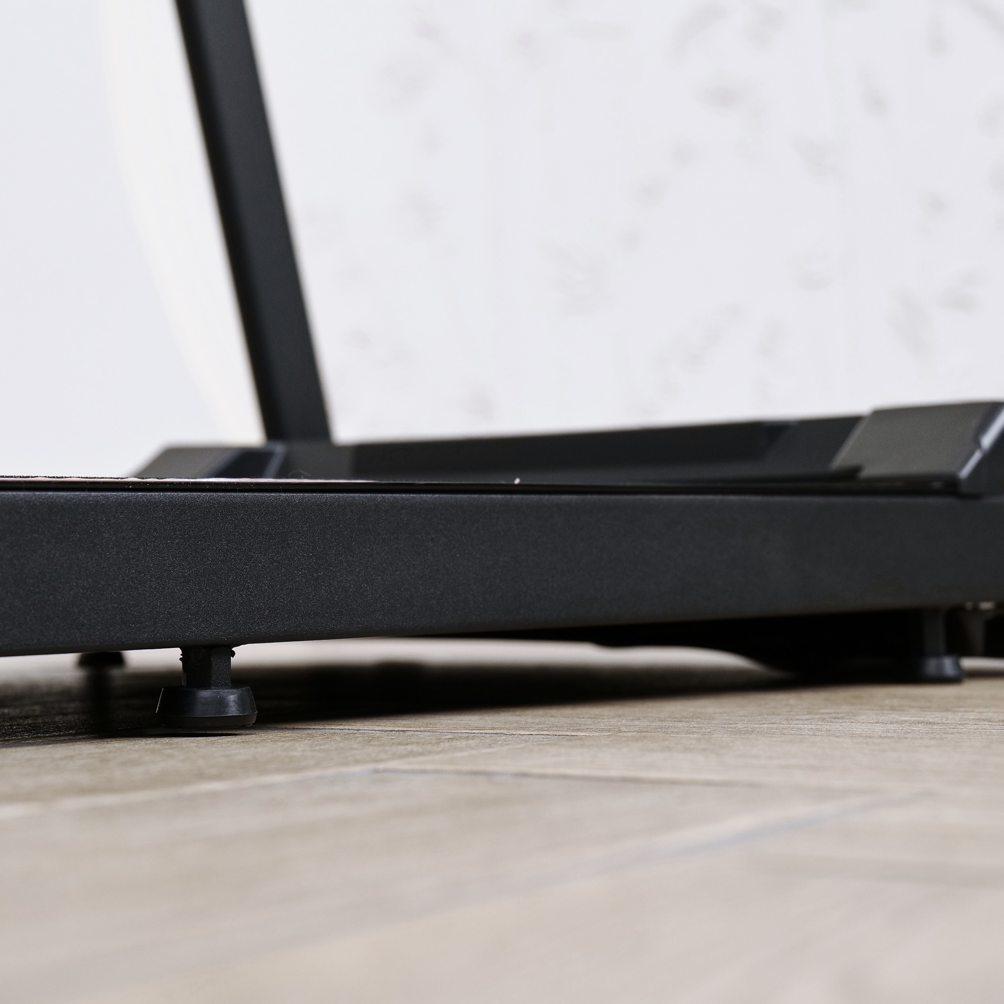 Беговое полотно размером 110 х 40 см гарантирует безопасность и удобство во время занятий. Благодаря компактным размерам в рабочем виде (120 х 58 х 107 см) и транспортировочным роликам, дорожку легко перемещать и хранить.