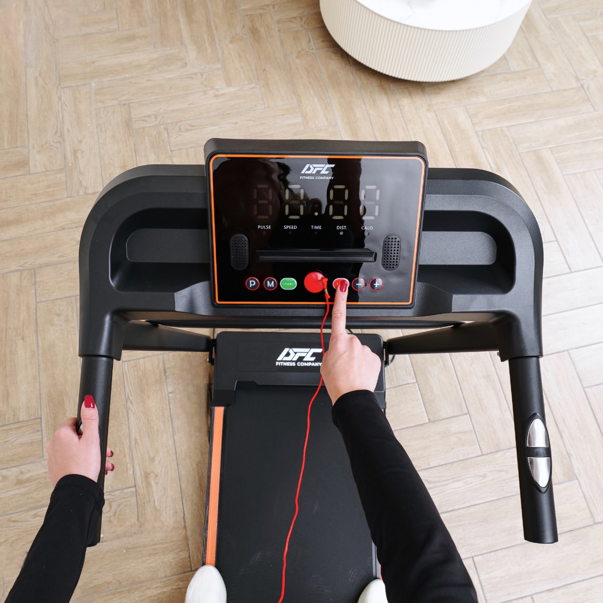 DFC BERIT — электрическая беговая дорожка для комфортных и эффективных тренировок. Максимальный вес пользователя составляет 120 кг, а диапазон скоростей от 1 до 12 км/ч. Мощный двигатель 1,25 л/с обеспечивает надёжность и долговечность работы.