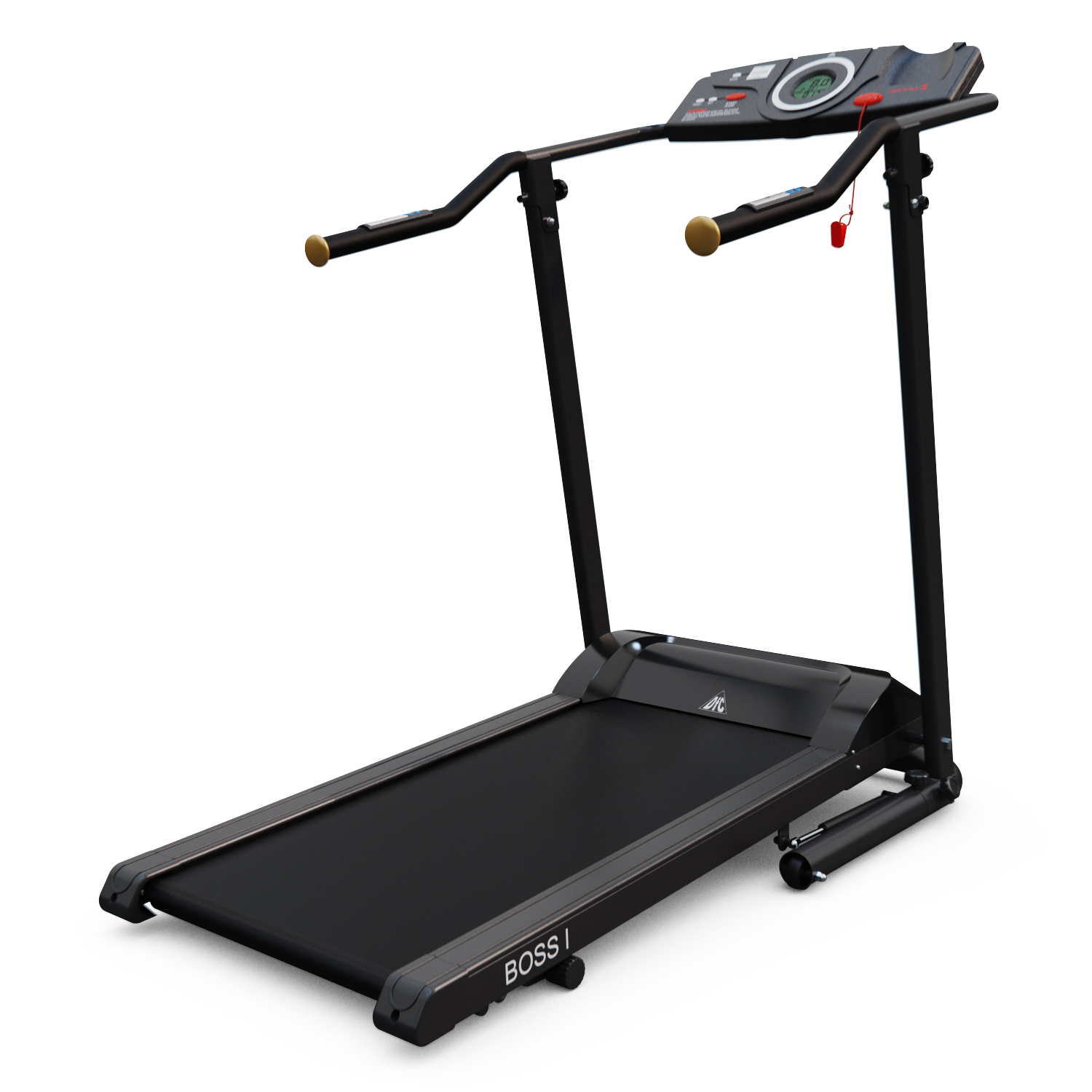 Беговая дорожка DFC BOSS для профессиональной ходьбы с длинными обрезиненными поручнями. Рекомендуется реабилитационное использование для восстановления функций опорно-двигательного аппарата.