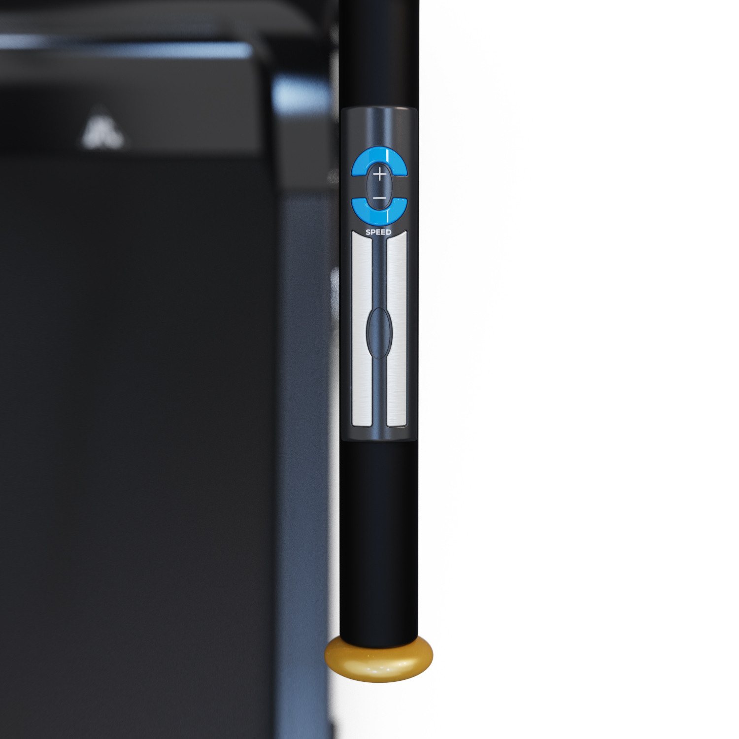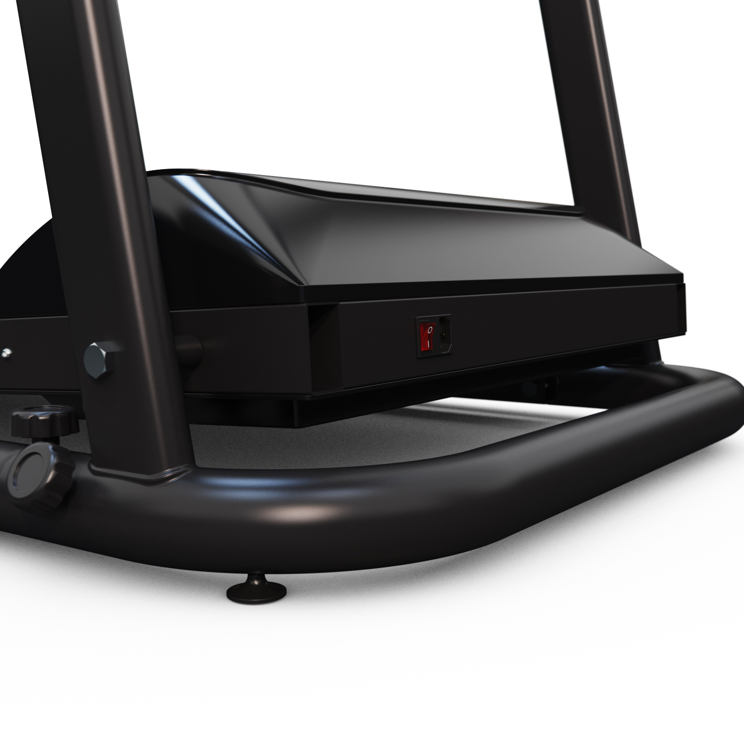 Скорость полотна начинается с 0,6 км/ч и повышается с шагом 0,1 км/ч. Возможен запуск двигателя с пользователем на полотне. Угол наклона дорожки регулируется в 2-х положениях.