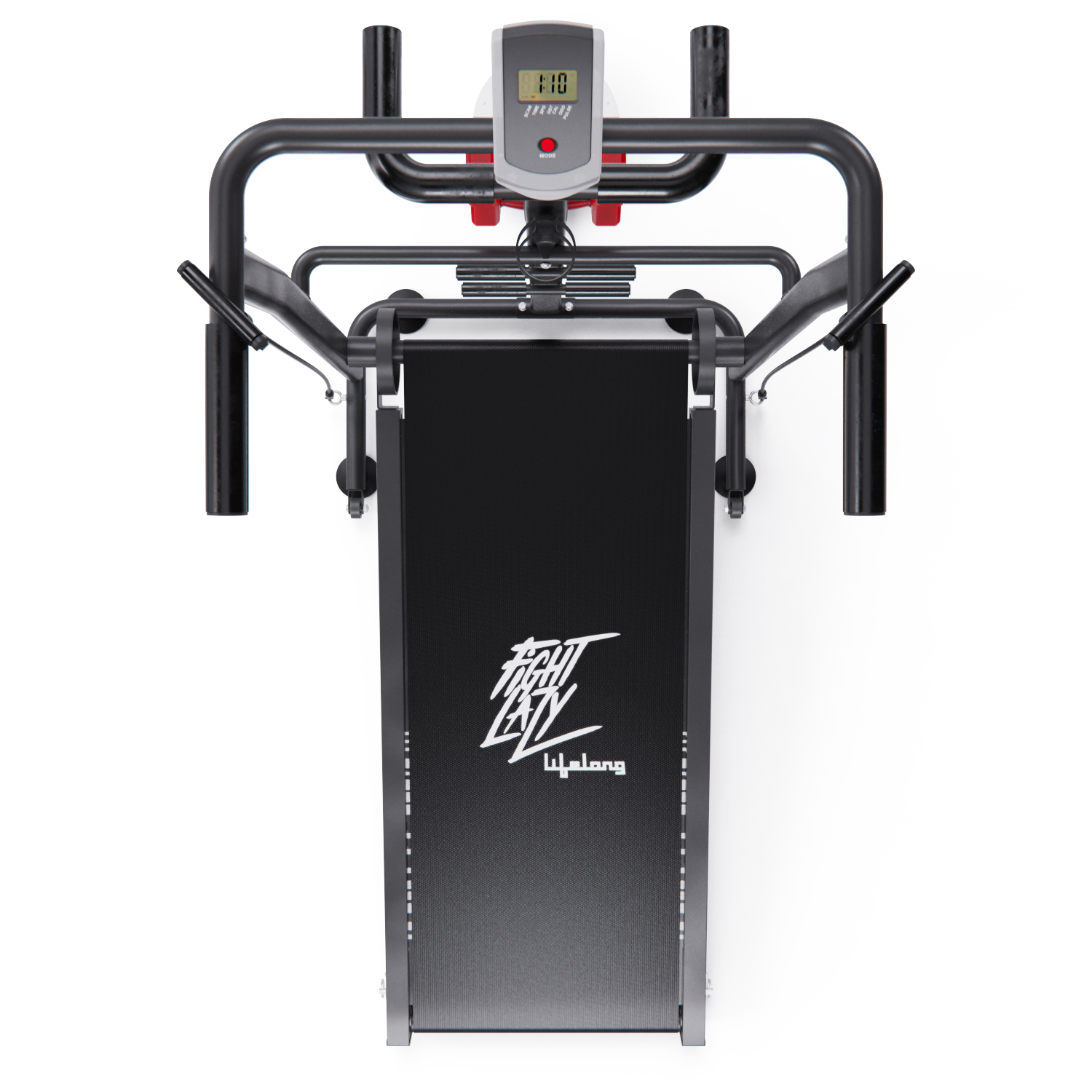 Механическая система регулировки угла наклона на 2 уровня дает возможность изменять интенсивность тренировки, что позволяет разнообразить тренировочный процесс и задействовать различные группы мышц. Находясь под углом, дорожка разгоняется под собственным весом пользователя. Пользователь может самостоятельно регулировать скорость тренировок, начиная с медленного шага и переходя к более интенсивным упражнениям.