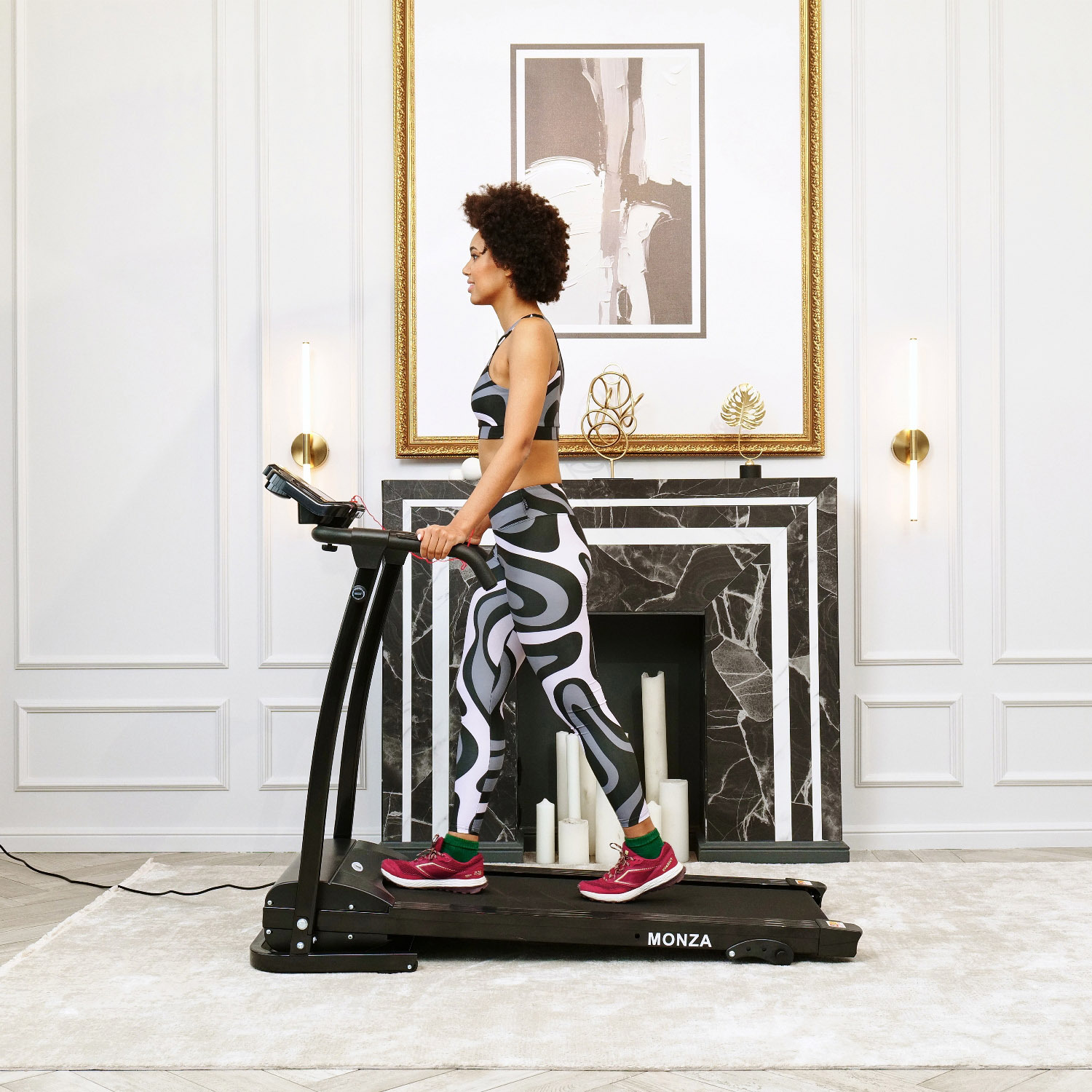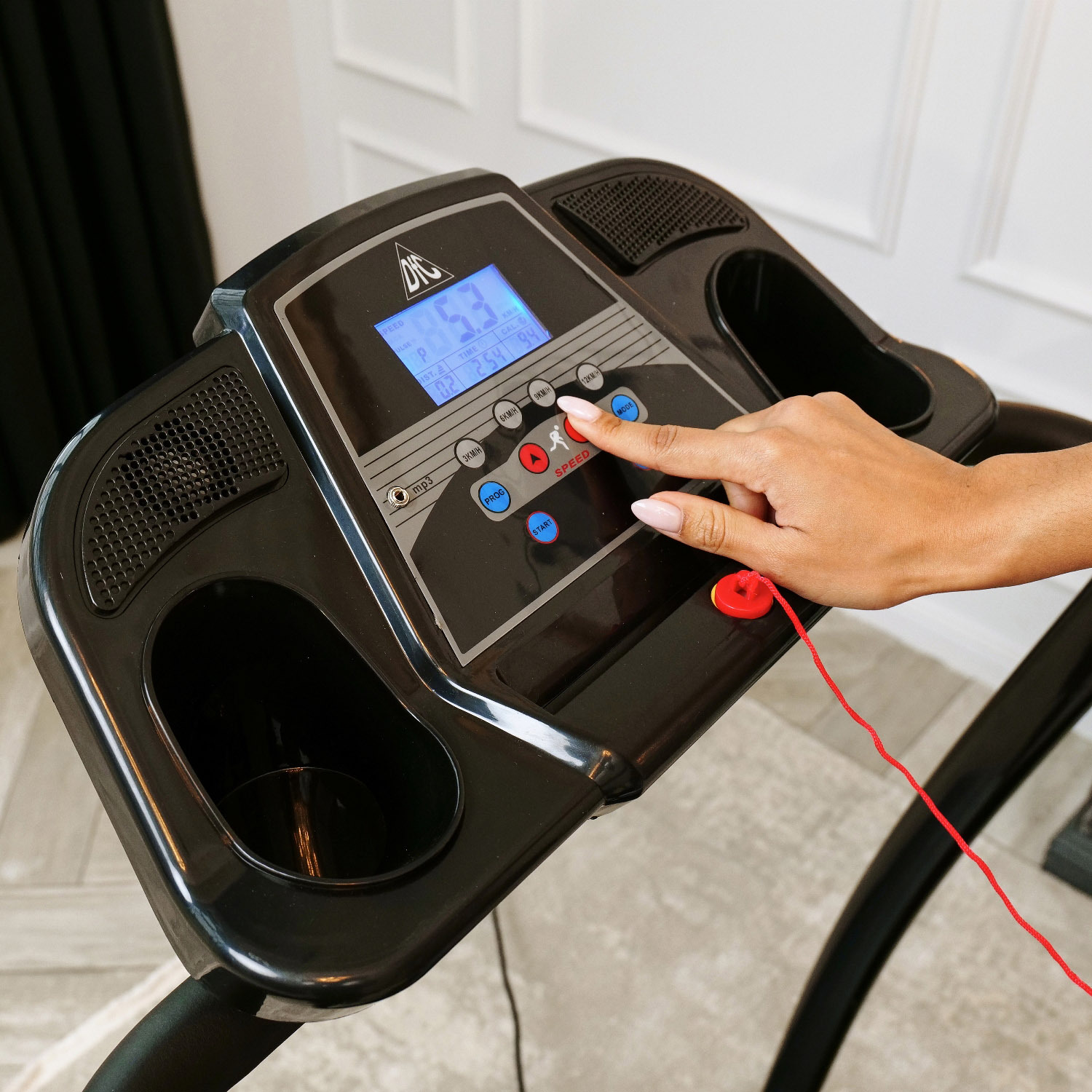 Электрическая беговая дорожка для занятий дома. Тренажер начального уровня с мотором мощностью 1,25 л.с. Шаг изменения скорости беговой дорожки 0,1 км/ч.