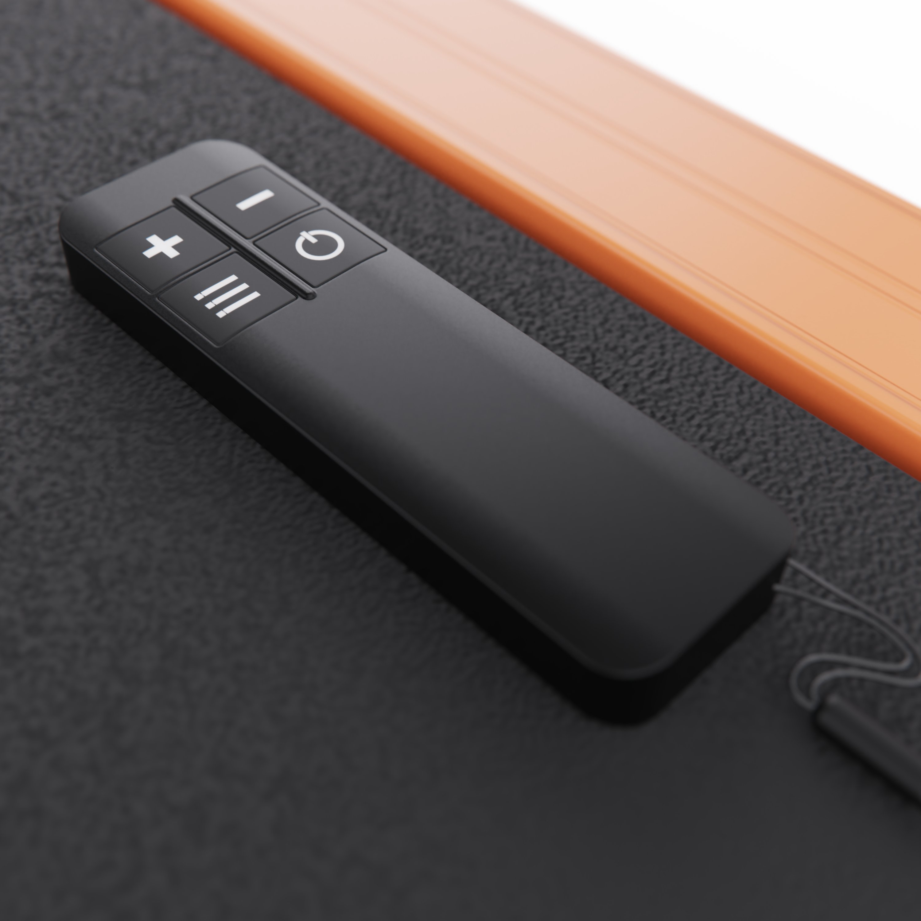 На встроенном LED-дисплее отображаются основные параметры тренировки: время, скорость, пройденная дистанция и количество калорий, что позволяет эффективно контролировать процесс занятий. Управление дорожкой осуществляется с помощью пульта дистанционного управления, с которого можно включать и выключать питание, а также регулировать скорость без прерывания тренировки. Пульт дистанционного управления работает от двух батареек типа AAA (в комплект не входят).