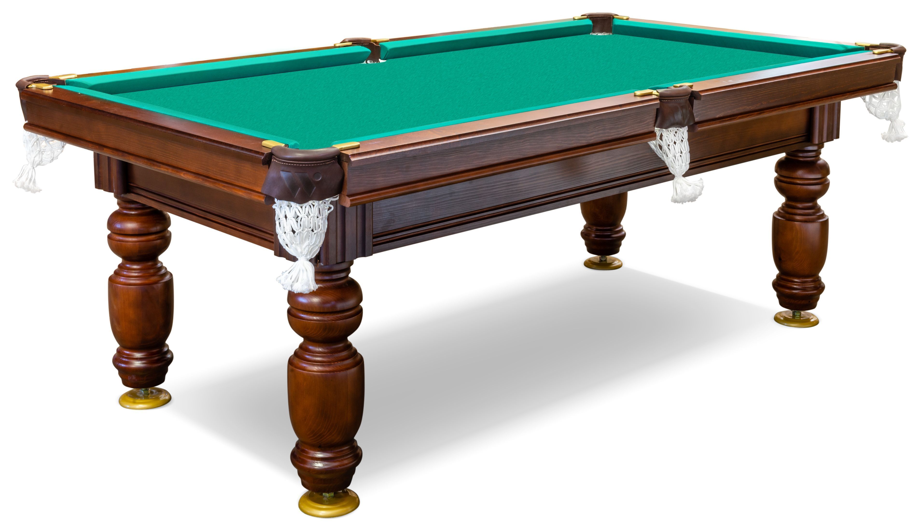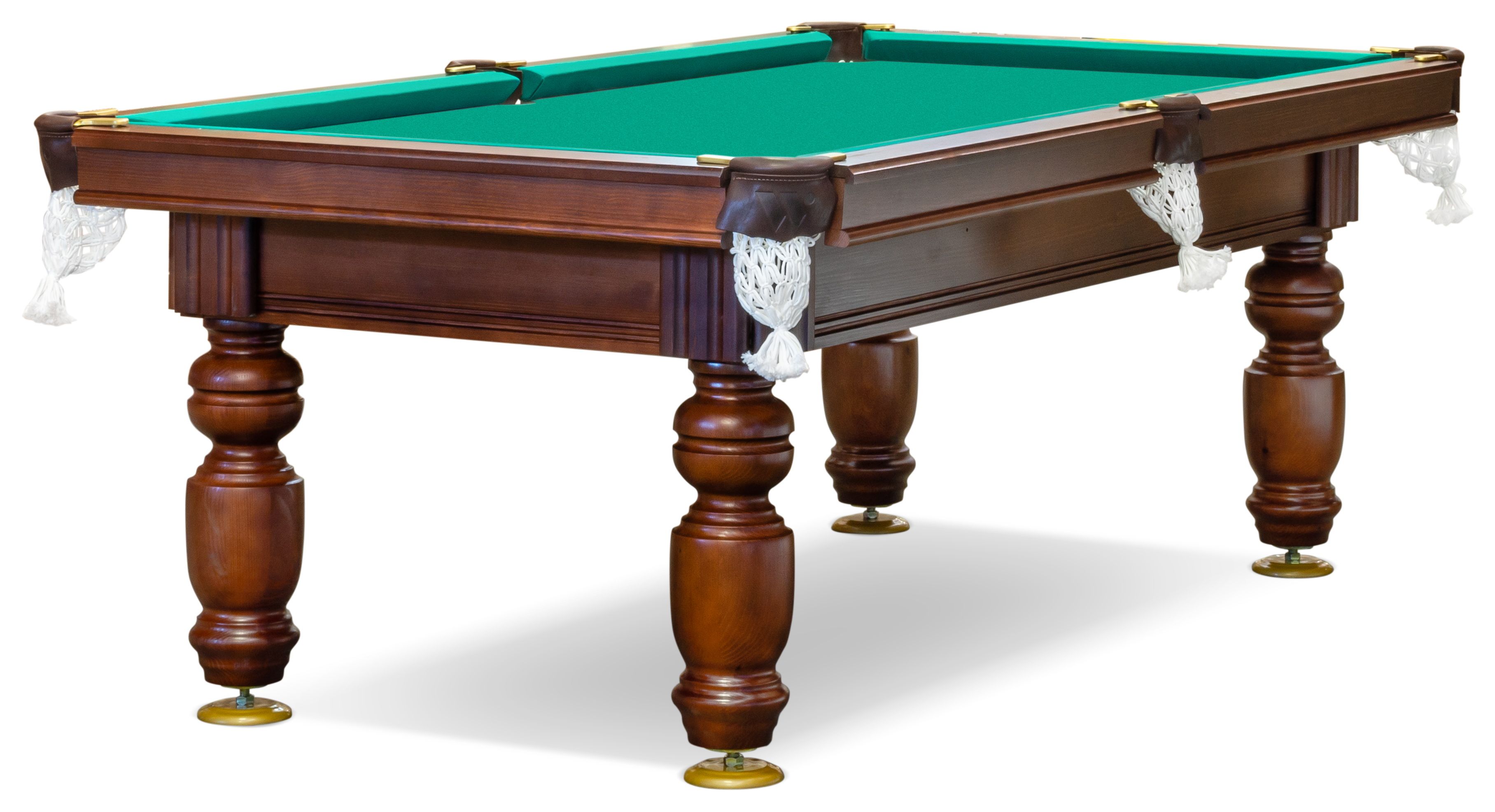 Презентабельный вид — бильярдный стол «Ладога» выглядит значительно дороже, чем стоит. Этому способствуют классический дизайн, фактура отборного массива березы, идеальная полировка, окраска под орех и качественное лаковое покрытие.