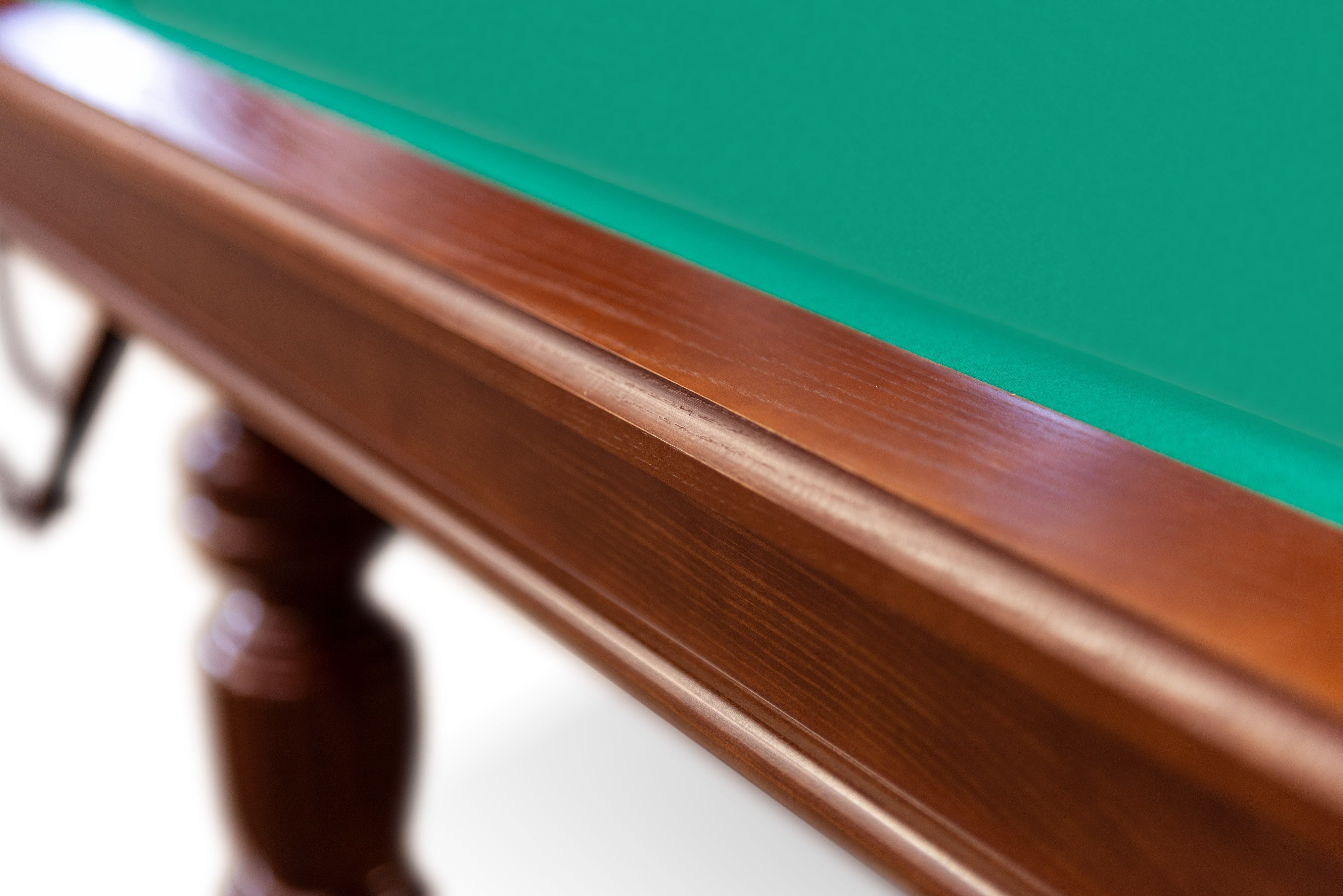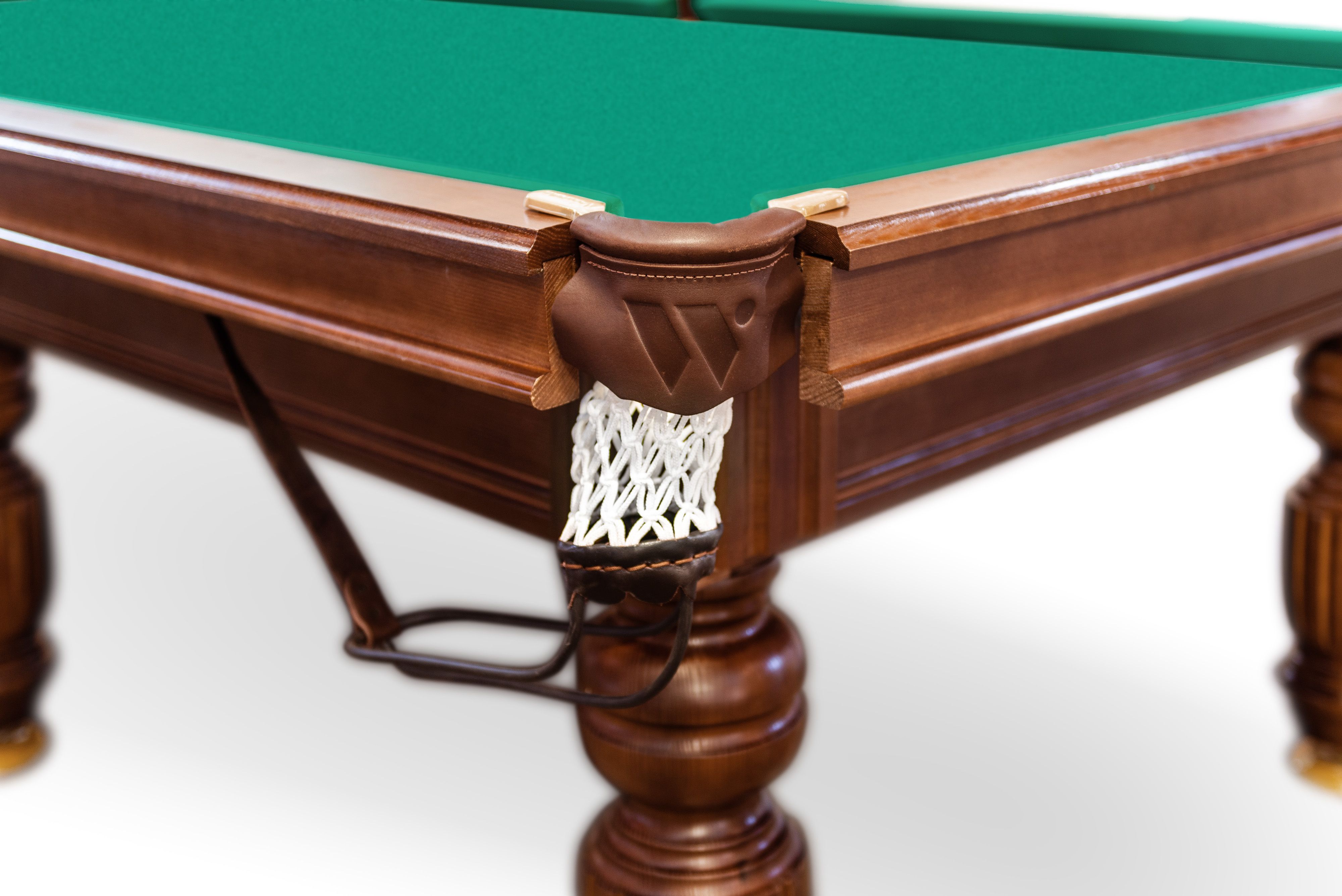 • Борта из ясеня укрепляют изделие в самом уязвимом месте. Бильярдный стол получает наибольшую нагрузку на борта. У этой модели они сделаны из ясеня — из древесины с высокой твердостью, плотностью и влагоустойчивостью. Она поможет избежать деформации и перекосов многие годы.