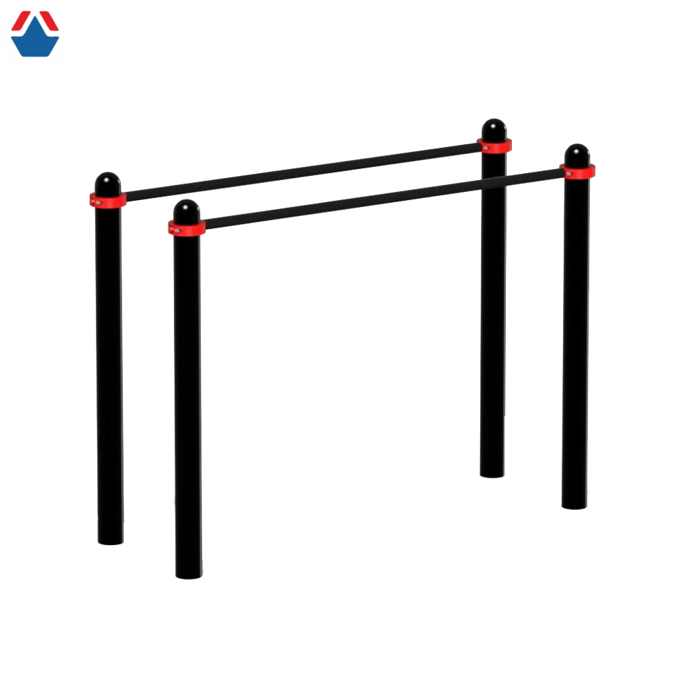 Брусья дают возможность легко организовать как индивидуальные, так и групповые занятия воркаутом на спортивной площадке или в любом дворе. В качестве несущей конструкции используется 4 опорных столба с полусферическими заглушками высотой 1500 миллиметров, между которыми параллельно друг другу