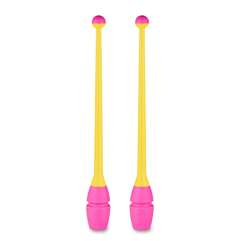 Булавы для художественной гимнастики INDIGO выполнены из двух материалов: ручка - из термопластика, голова булавы - из каучука.