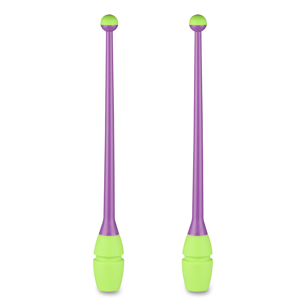 Булавы для художественной гимнастики INDIGO выполнены из двух материалов: ручка - из термопластика, голова булавы - из каучука.