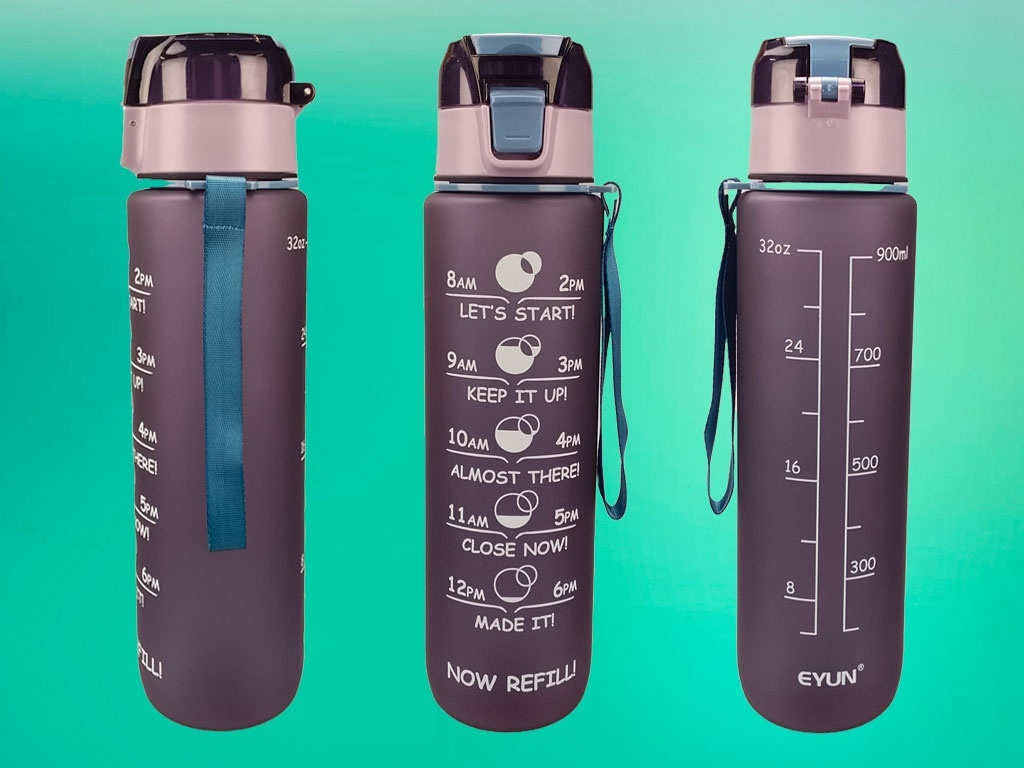 • Оптимальный объём — 1000 мл: достаточно жидкости на целый день, при этом бутылка остаётся компактной и удобной.