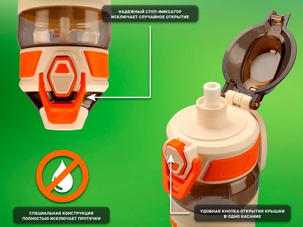 Объём бутылки в 1 литр позволит вам поддерживать водный баланс в течение всего дня — будь то тренировка, прогулка или рабочий день. Эта бутылка создана для тех, кто ценит удобство и надёжность. Герметичная крышка надёжно защитит содержимое от протекания, а удобная ручка облегчит переноску — просто прикрепите бутылку к рюкзаку или сумке.