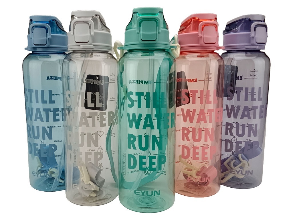 - Оптимальный объём — 1500 мл: достаточно жидкости на целый день, при этом бутылка остаётся компактной и удобной.
