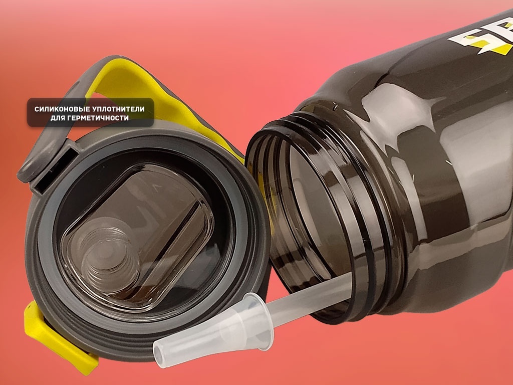 Объём бутылки в 1.8 литра позволит вам поддерживать водный баланс в течение всего дня — будь то тренировка, прогулка или рабочий день. Эта бутылка создана для тех, кто ценит удобство и надёжность. Герметичная крышка надёжно защитит содержимое от протекания, а удобная ручка облегчит переноску — просто прикрепите бутылку к рюкзаку или сумке.