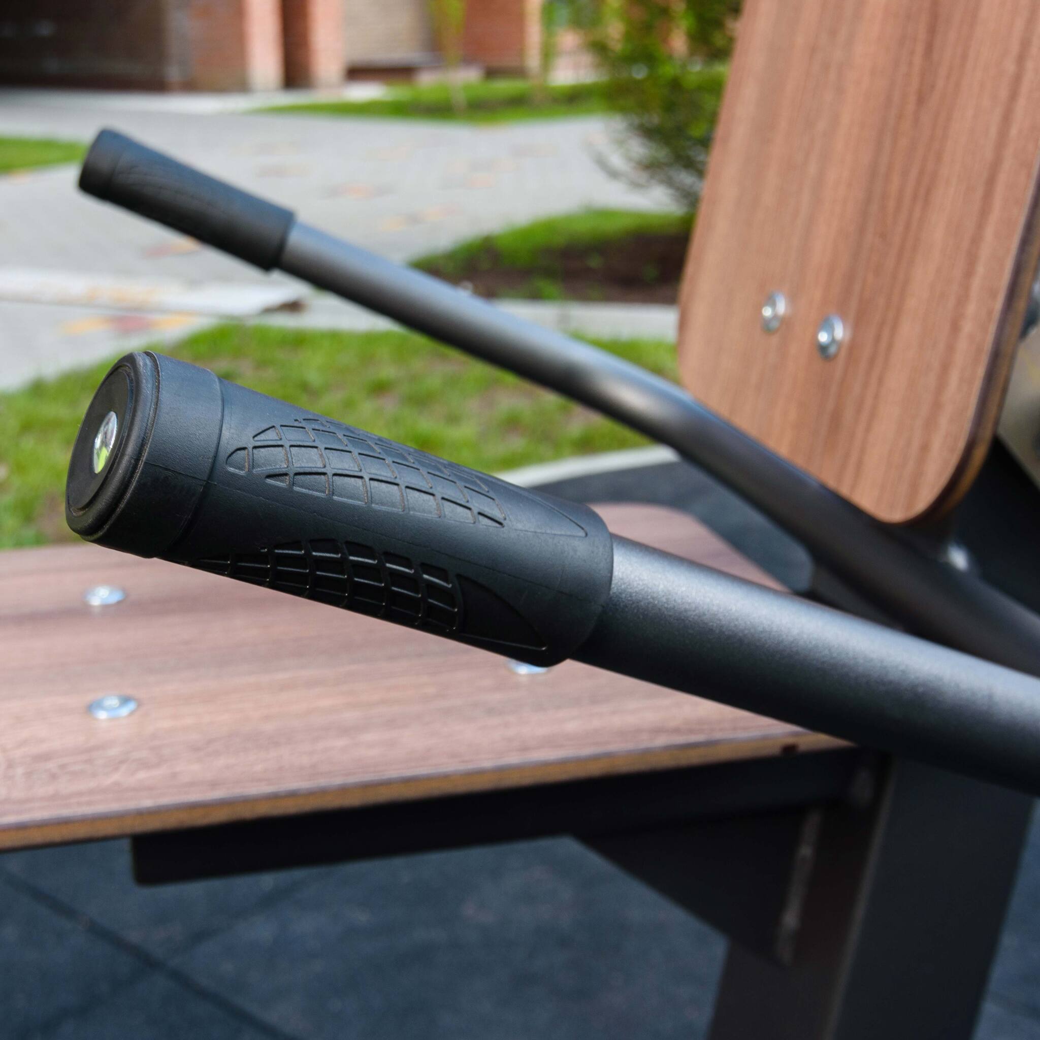 Сиденье и спинка тренажера выполнены из высокопрочного ударостойкого HPL-пластика толщиной 12 мм.