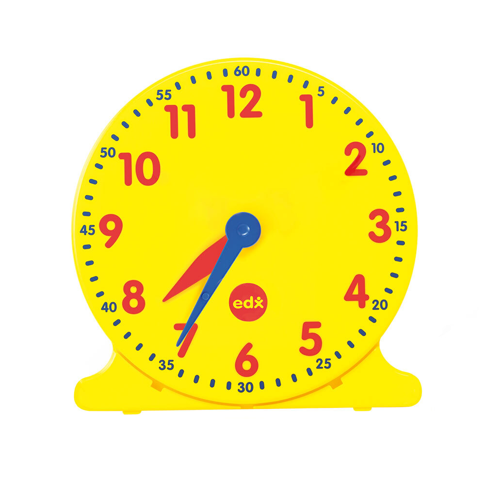 Большие настольные демонстрационные часы с подставкой, выполнены из прочного пластика (диаметр 30см.) с нанесением часового и минутного циферблата в 12-часовом формате. Механизм зависимый-ползунковый, т.е. двигая минутную стрелку, двигается и часовая.