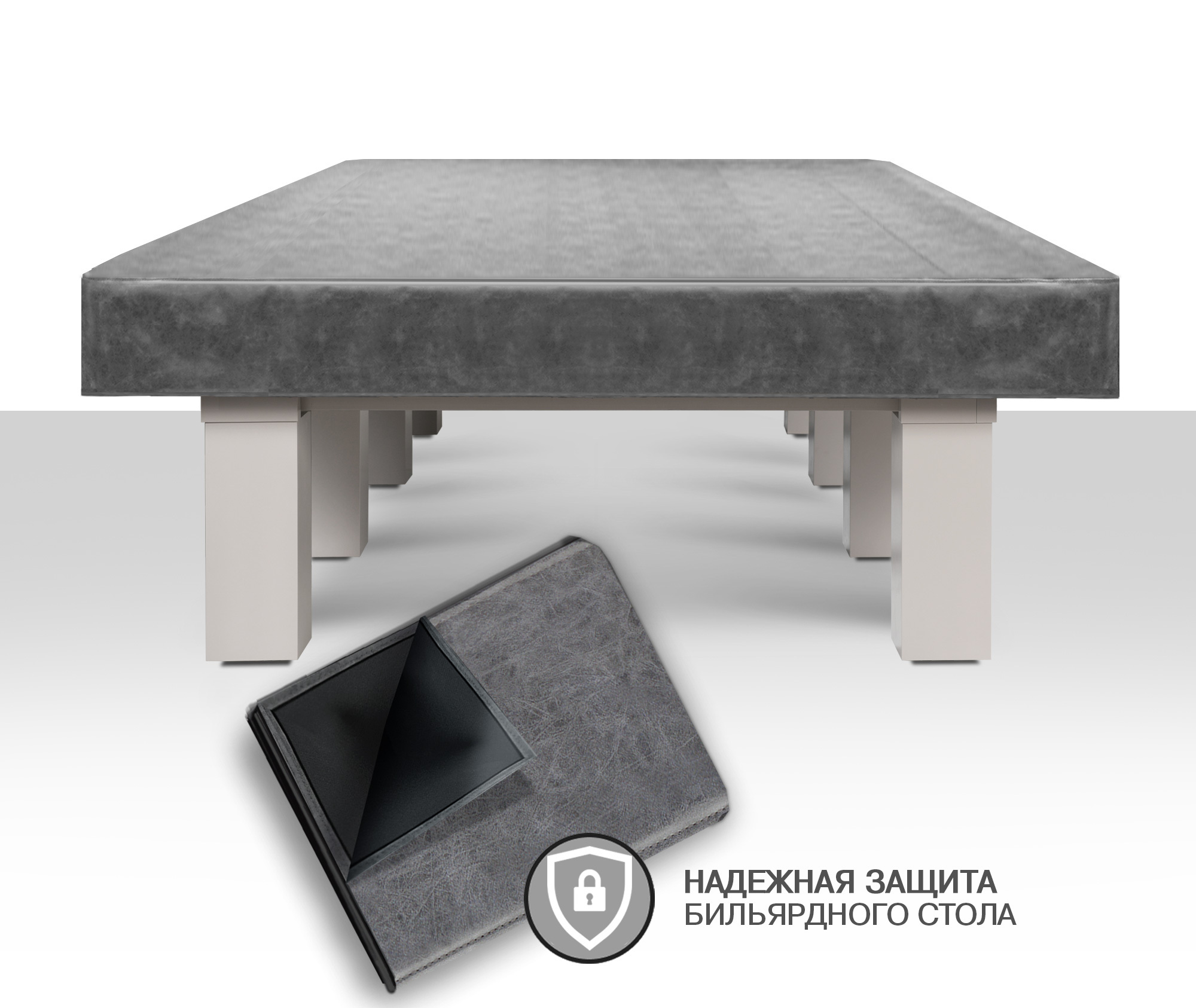 Чехол для бильярдных столов из плотной экокожи высокого качества обеспечивает надежную защиту от пыли, влаги, солнечного света и случайных царапин в перерывах между играми. Благодаря этому чехлу сукно не выгорает на солнце, и необходимость частой чистки поверхности стола от пыли значительно уменьшается. Это позволяет сукну сохранять свои свойства на более длительный срок.
