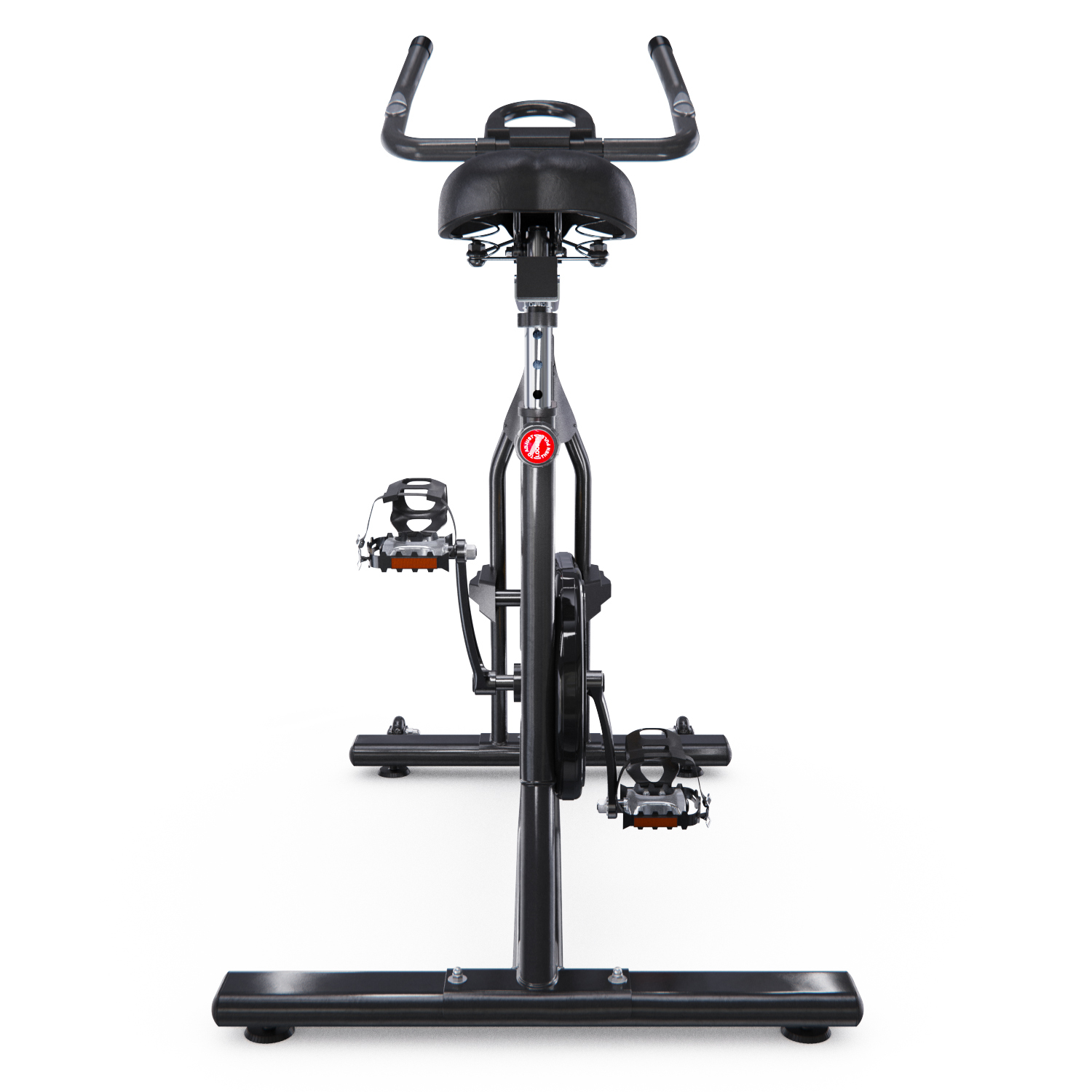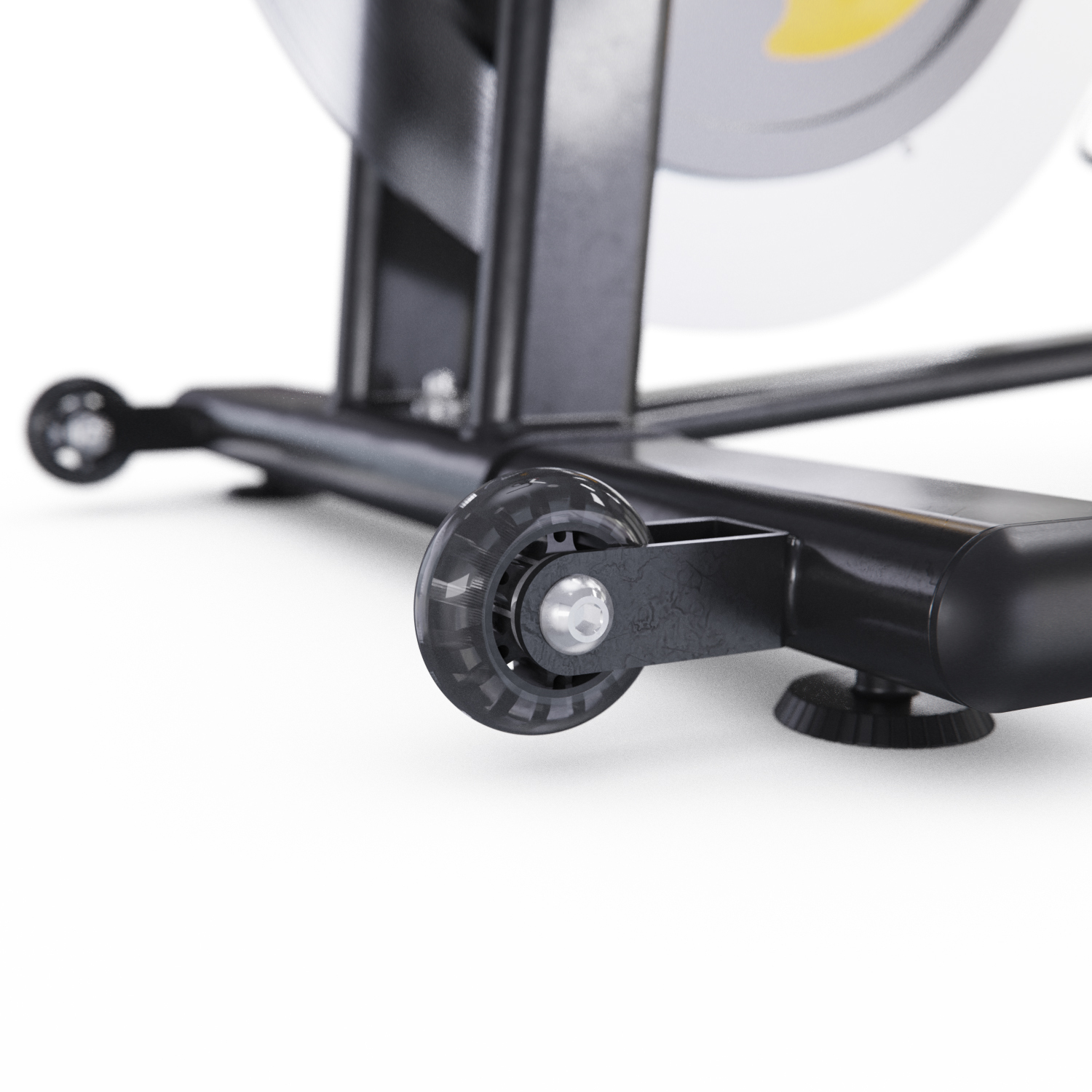 Спин-байк CHAOKE чёрного цвета удобнее и тише других. Прочная стальная рама и алюминиевый маховик весом 19 килограмм обеспечивают устойчивость во время езды на велосипеде. Он выдерживает нагрузку до 150 кг и подходит для пользователей ростом от 146 до 198 см.