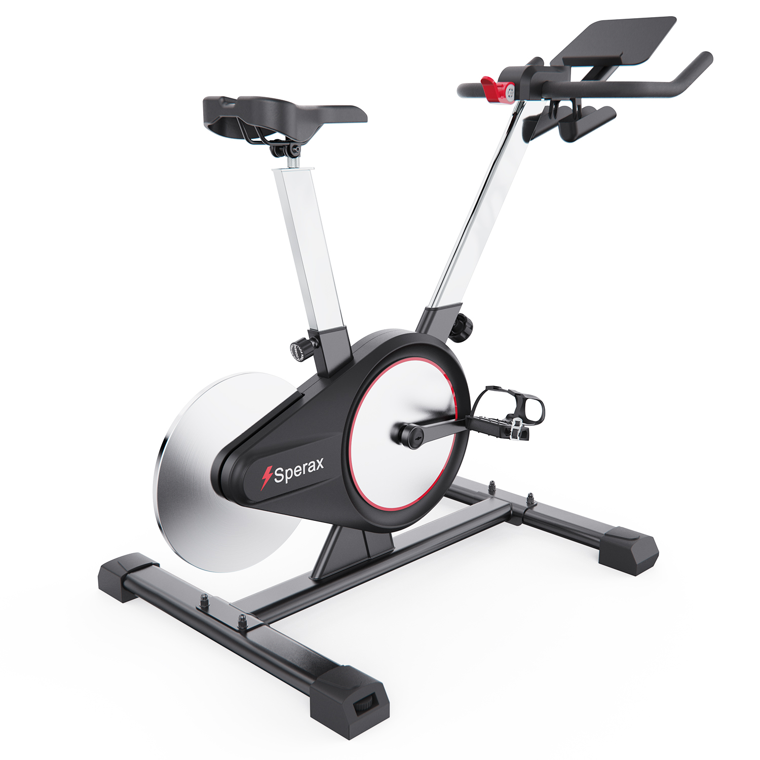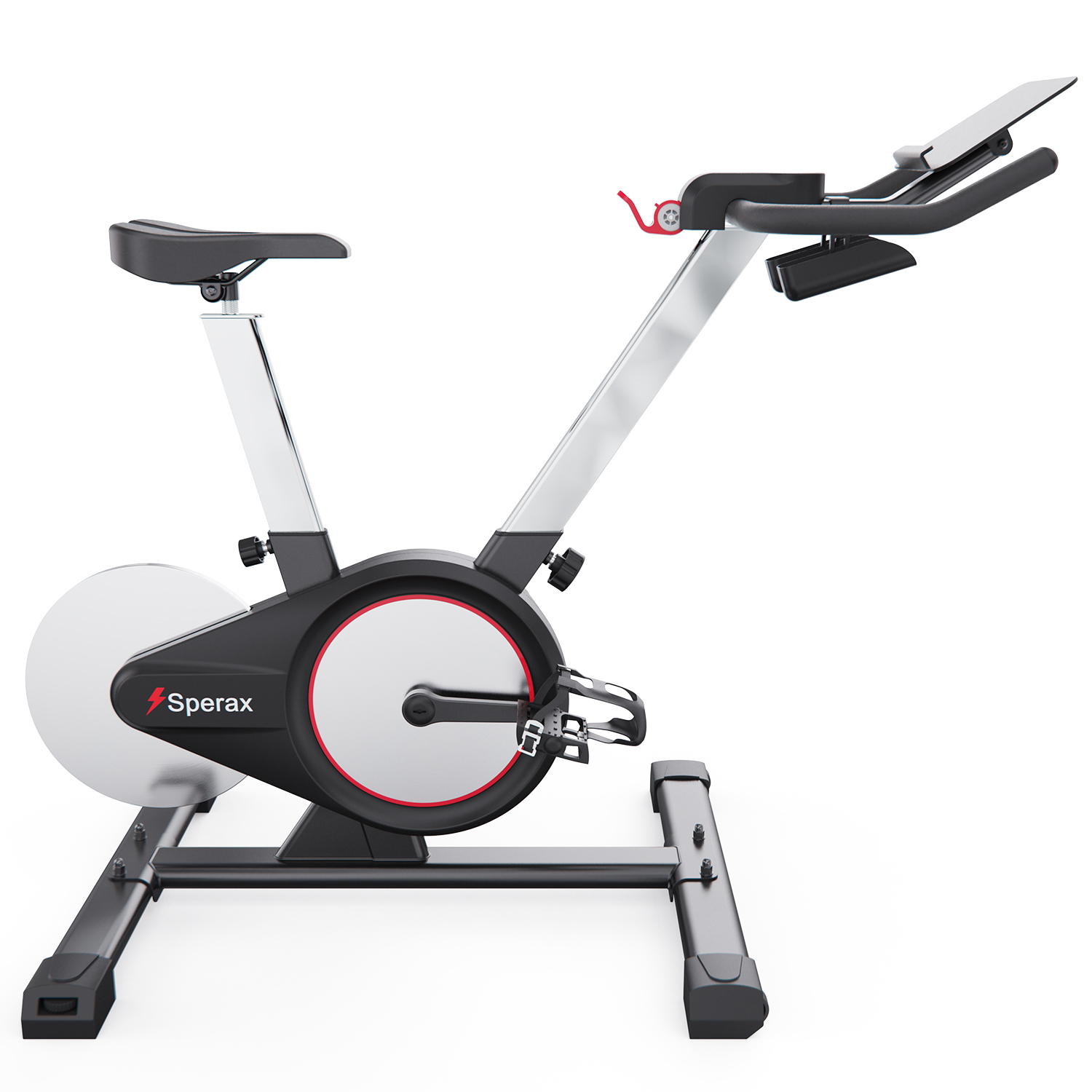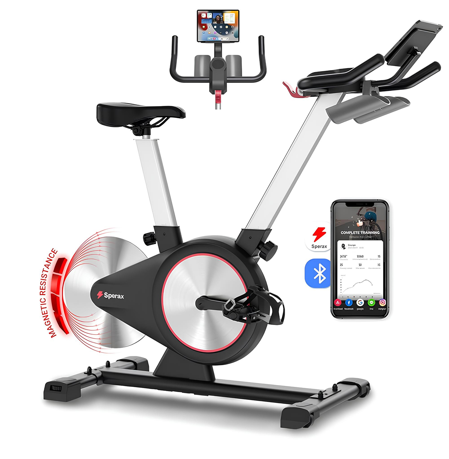 Встроенный Bluetooth-модуль позволяет синхронизировать велотренажёр с мобильным приложением Sperax, которое предлагает онлайн-курсы, персонализированные планы тренировок и статистику в реальном времени: время, частота оборотов, дистанция, калории. Установите ваше устройство на встроенную подставку для планшета, включите тренировку и наслаждайтесь процессом. Для удобства также предусмотрен держатель для бутылки.