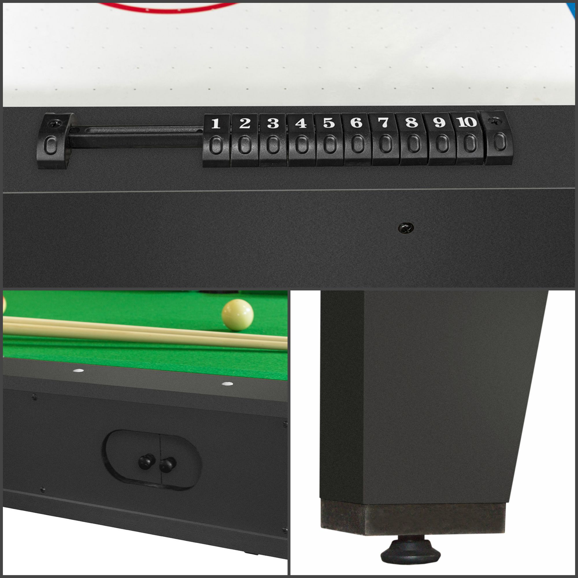 В зависимости от настроения Вы сможете провести на нем тренировку по пулу или сразиться в аэрохоккей с лучшим другом - достаточно просто повернуть и закрепить нужную игровую поверхность.