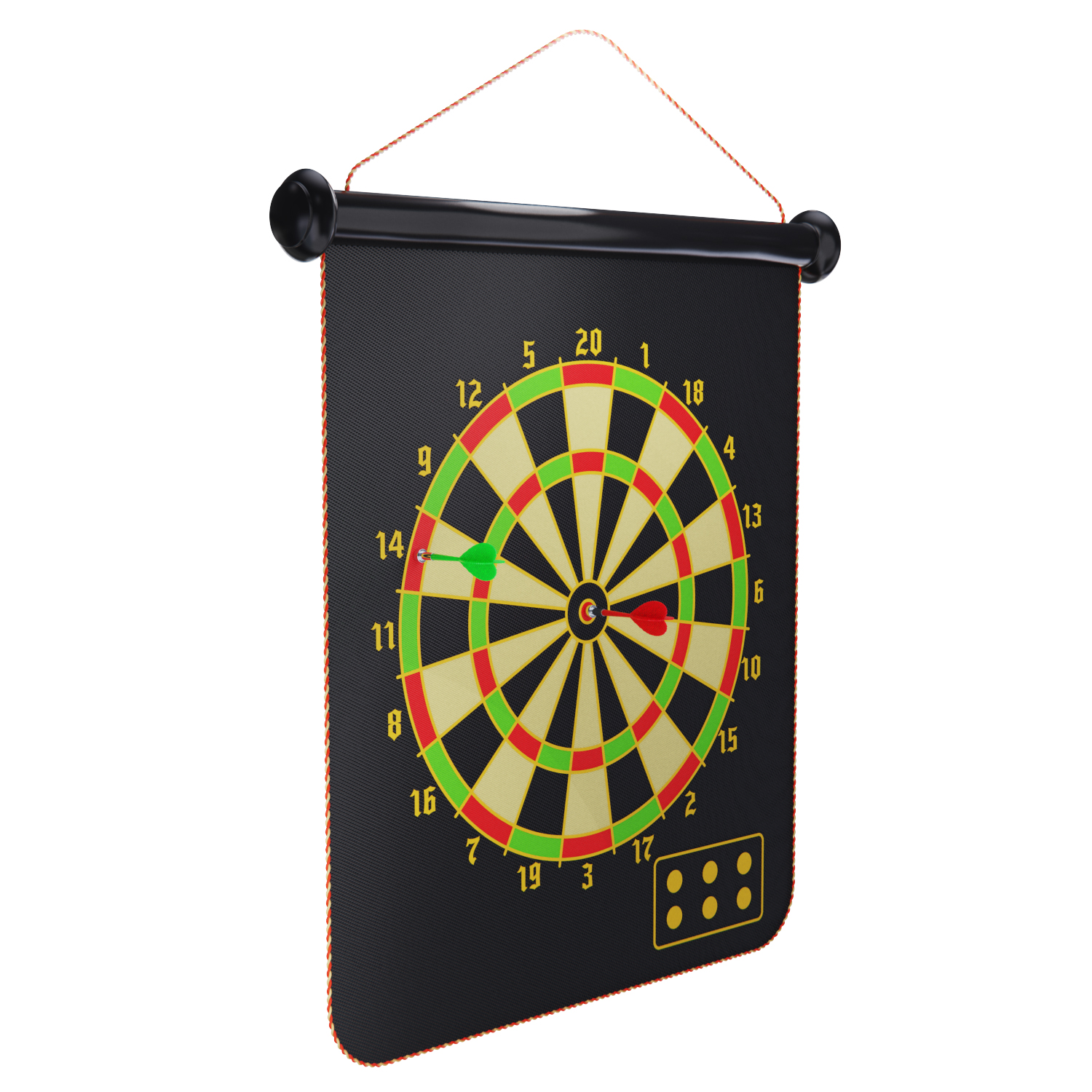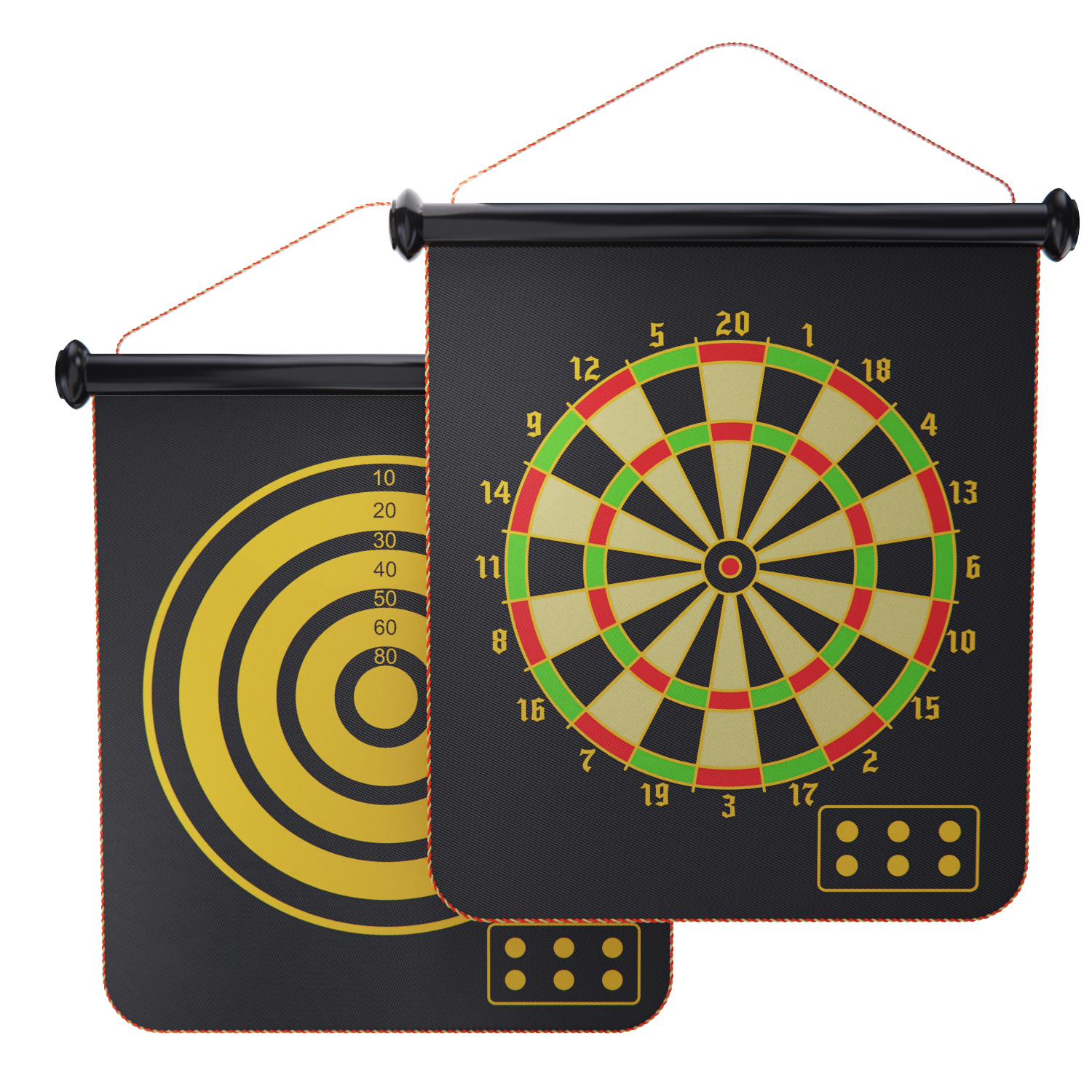 Комплект мишени включает в себя 6 дротиков с магнитными наконечниками, а также 2 мишени с каждой из сторон для разных типов игры. Каждый дротик весит 7 грамм, что делает его легким и удобным для бросков.