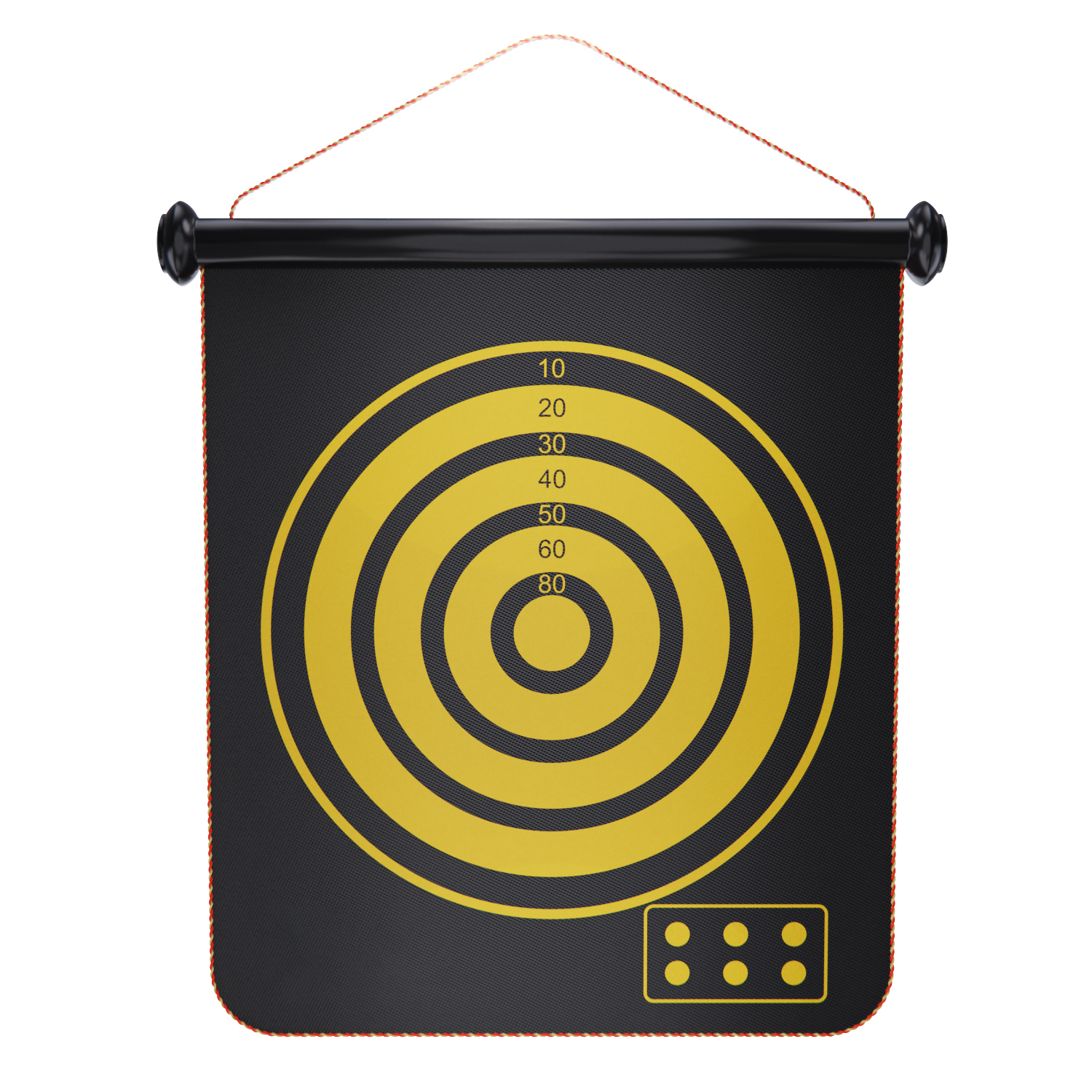 Крепится мишень при помощи верёвки, что позволяет настроить высоту мишени и выбрать место для игры, которое наиболее удобно для вас. Мишень выполнена из гибкого материала, поэтому она удобно сворачивается и не занимает много места.