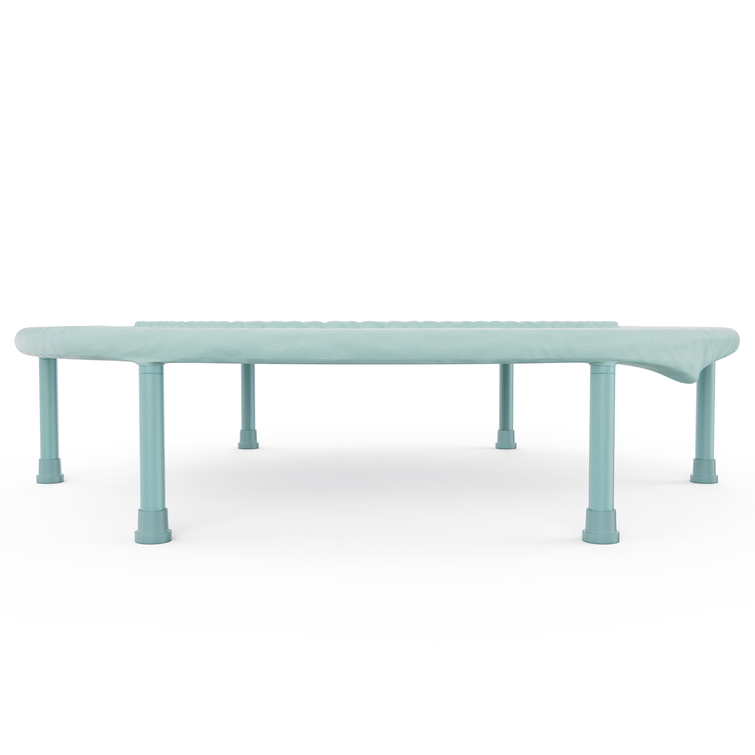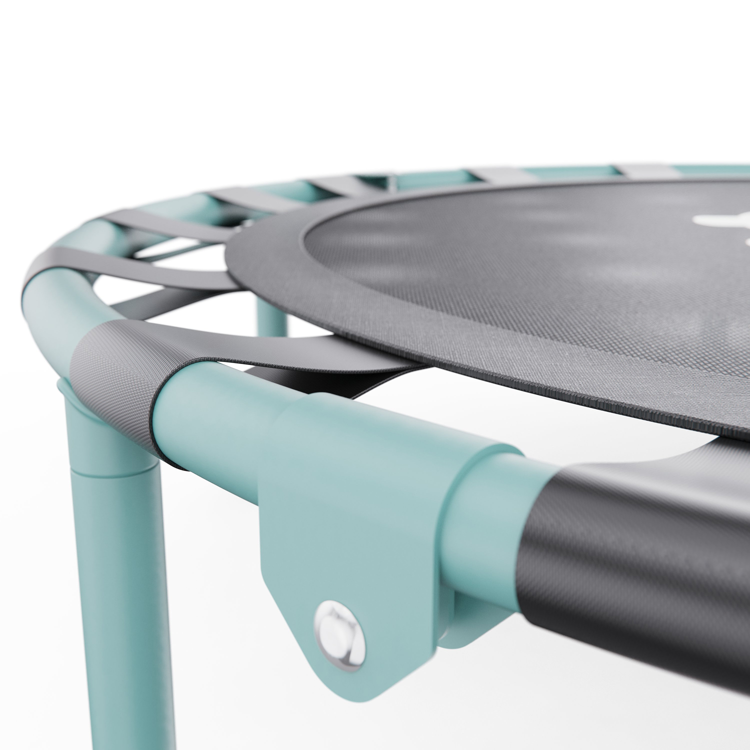 Диаметр батута составляет 98 см, обеспечивая достаточно пространства для прыжков и упражнений. Прыжковое полотно выполнено из прочного полипропилена, устойчивого к регулярным нагрузкам и износу. Высота батута — 21 см, что делает использование удобным и безопасным.