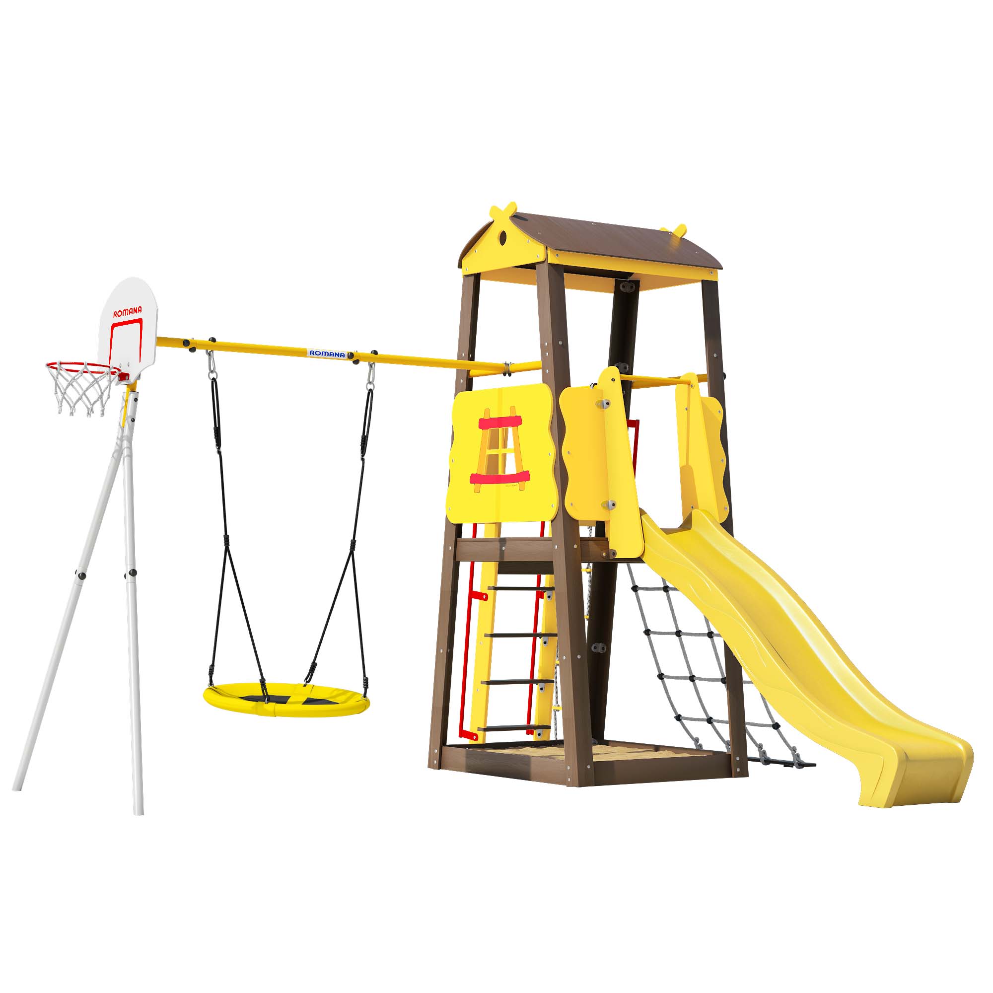 Детский спортивный комплекс для дачи ROMANA Избушка NEW (с качелями гнездо),
