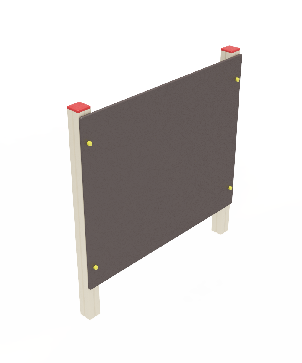 Выполнена в виде сборной конструкции, которая состоит из 2-х стоек и щита. Стойки выполнены из стального профиля 60х60 мм, длиной 1800 мм. Щит - из ламинированной фанеры толщиной 18 мм. Габарит щита 1500х1220х18 мм. В целях безопасности все отдельно выступающие детали и резьбовые соединения закрыты пластиковыми колпачками, края болтов закрыты пластиковыми заглушками.